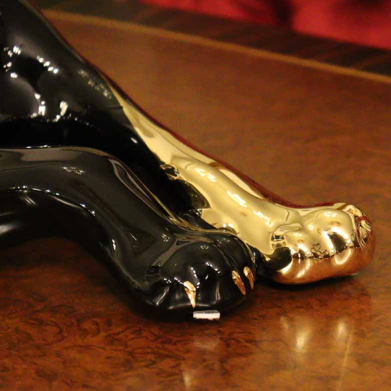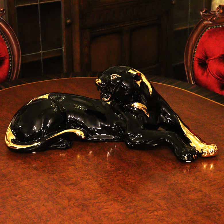 イタリア レオパード AHURA 陶器 置物 オブジェ 風水 縁起物 パンサー ブラックゴールド