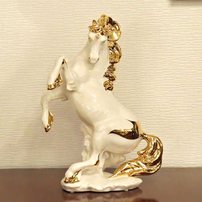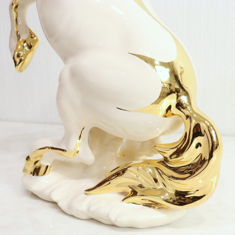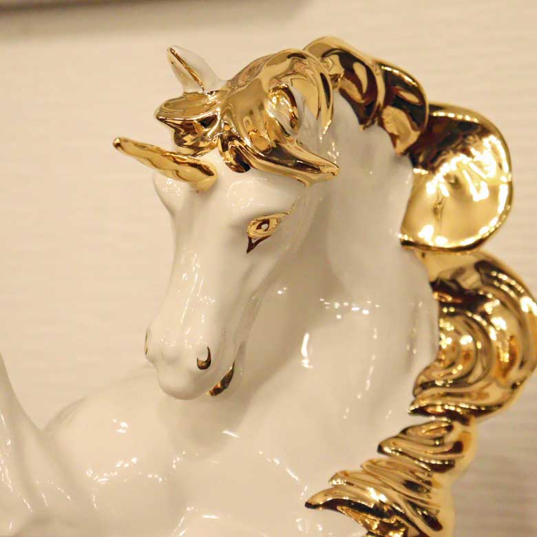 イタリア ユニコーン AHURA 陶器 置物 オブジェ 風水 縁起物 馬 アイボリーゴールド