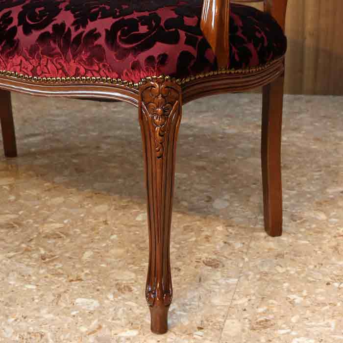 ◆イタリアの現地職人が丹精込めた繊細な彫刻が、フレーム部分や脚部全体に施されています。