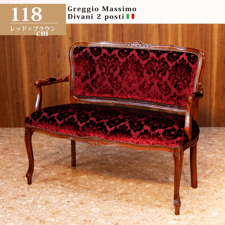 イタリア 二人がけ ソファ 木製 レッド・ルミナ サロンソファ