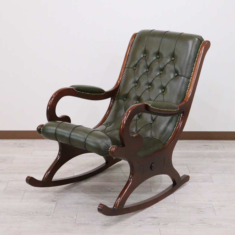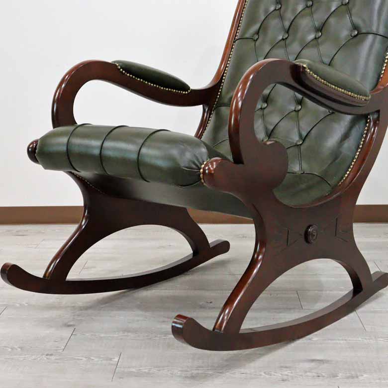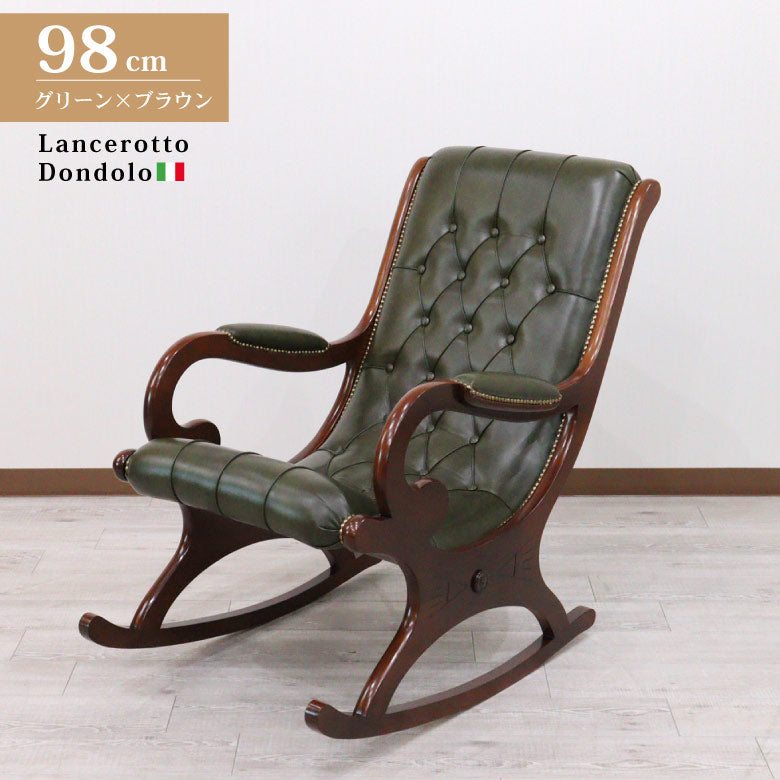 イタリア ロッキングチェア グリーン 本革 1人掛け 完成品
