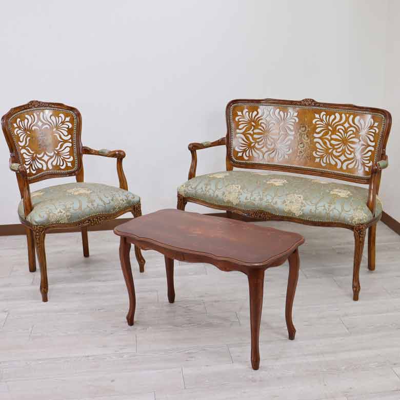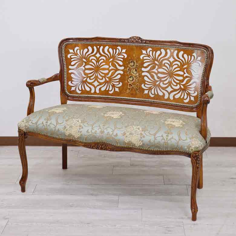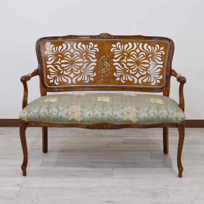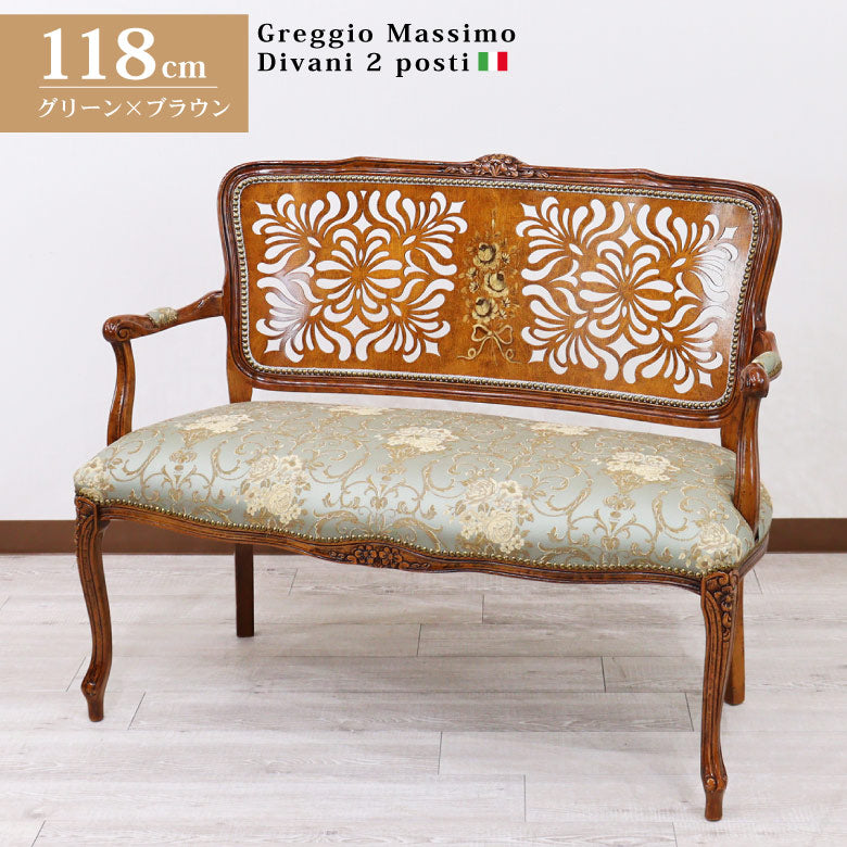 イタリア 二人がけ ソファ 木製 グリーン サロンソファ