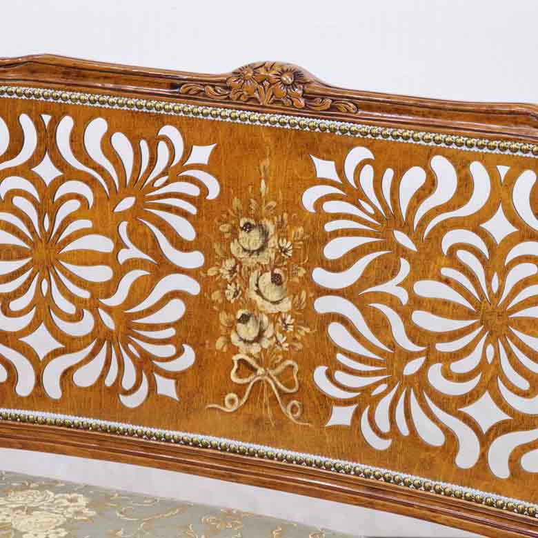 ◆イタリアの現地職人が丹精込めた繊細な彫刻が、フレーム部分や脚部全体に施されています。