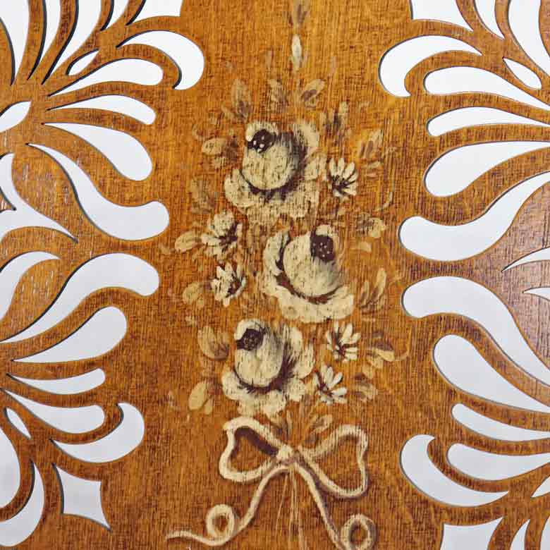 フレームと脚部はアンティーク塗装仕上げ。使いこむ程に味わいが出て長年に渡ってお楽しみいただけます。