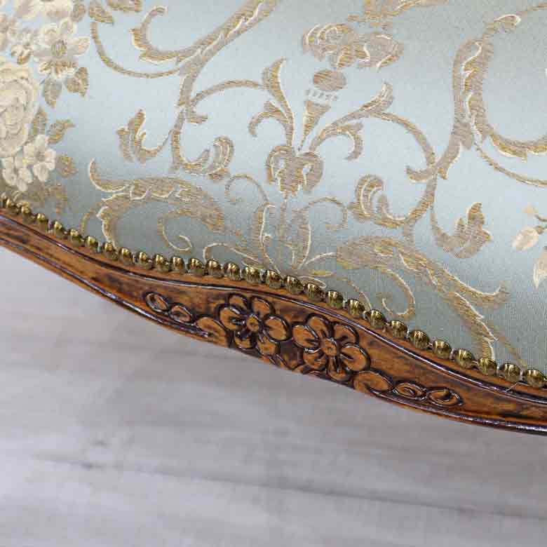 エレガントな猫脚、フレームに施された彫刻が美しいヨーロピアンデザインの家具となります。