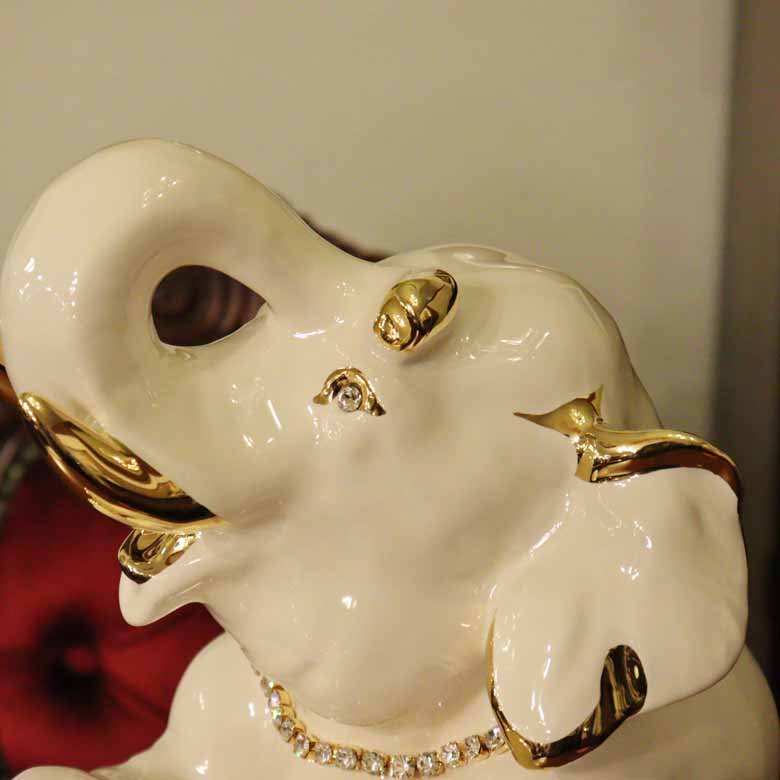 イタリア ゾウ AHURA 陶器 置物 オブジェ 風水 縁起物 エレファント アイボリーゴールド