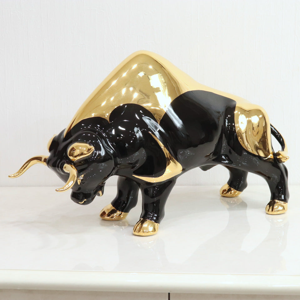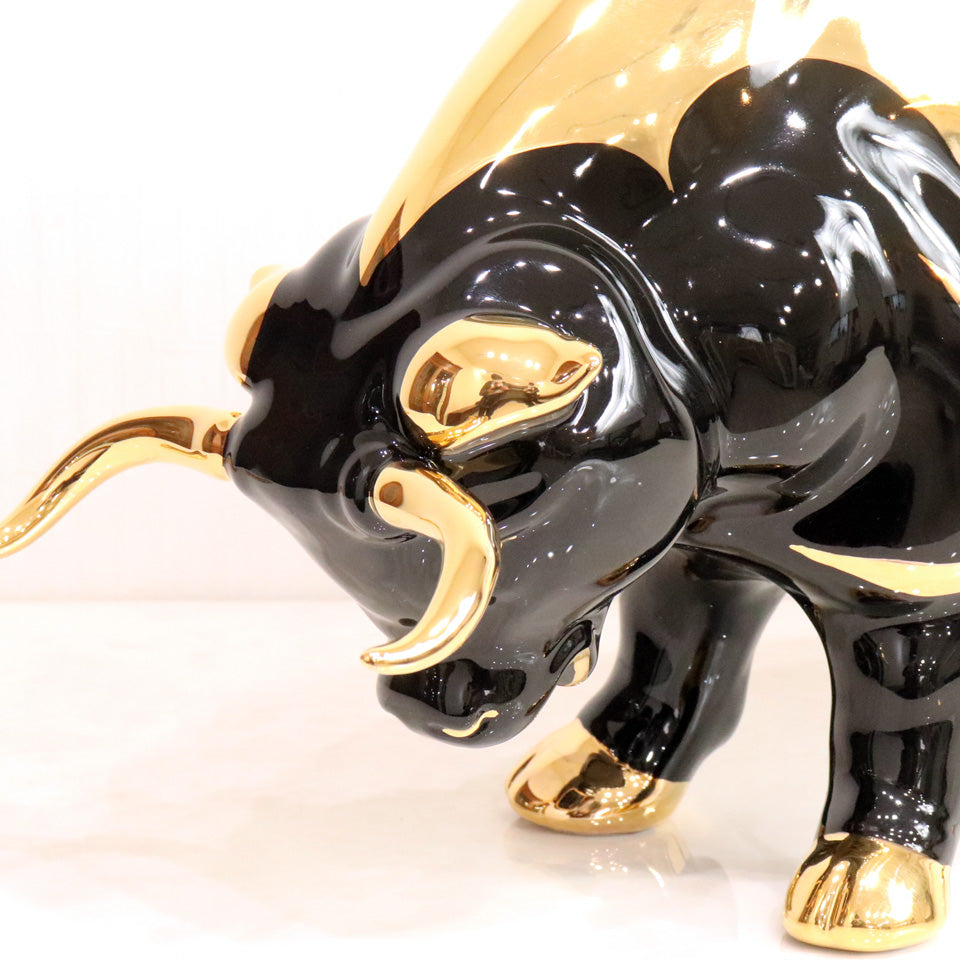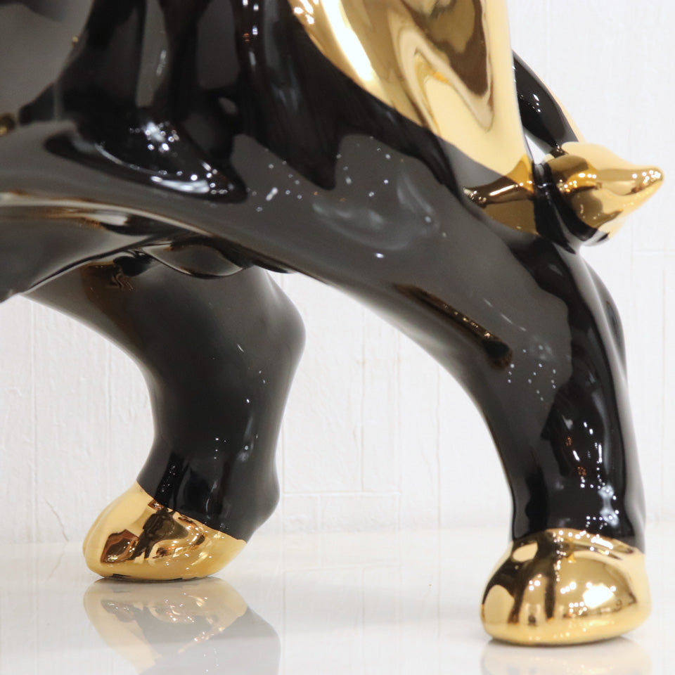 イタリア 雄牛 AHURA 陶器 置物 オブジェ 風水 縁起物 ブル 牛 ブラックゴールド
