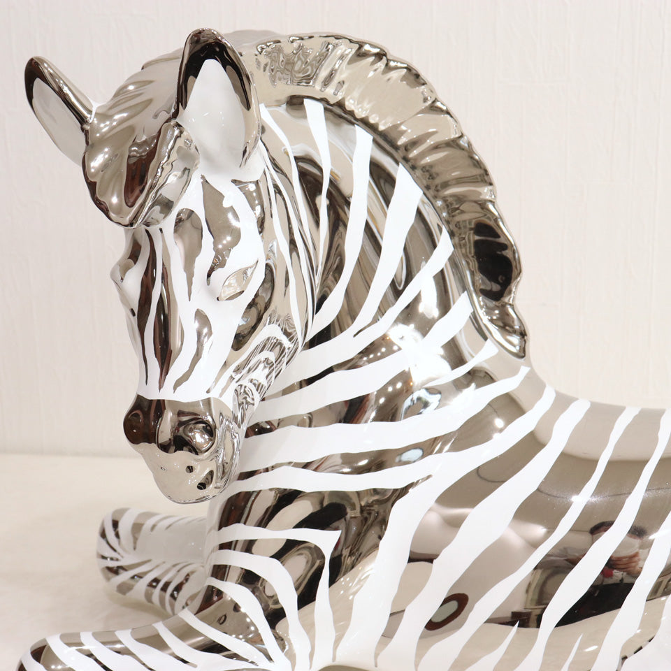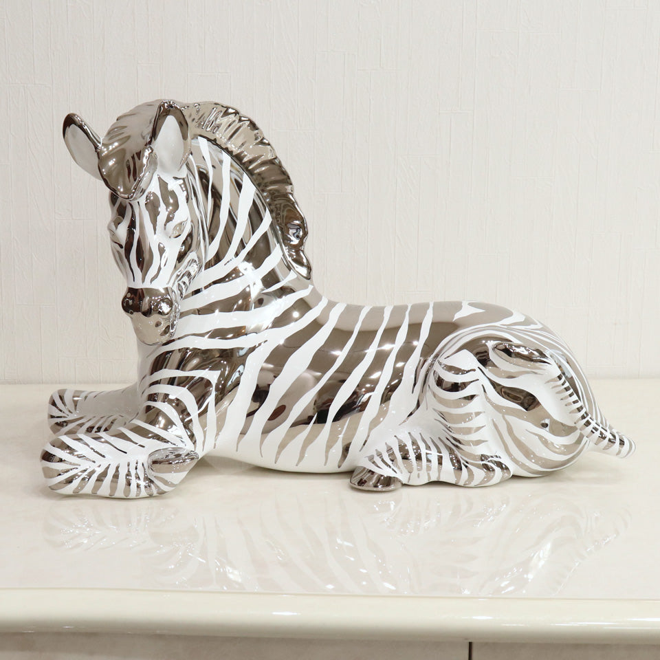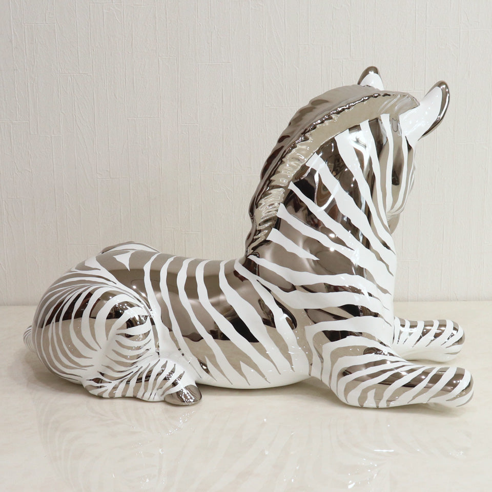 イタリア ゼブラ AHURA 陶器 置物 オブジェ 風水 縁起物 シマウマ プラチナ アイボリー