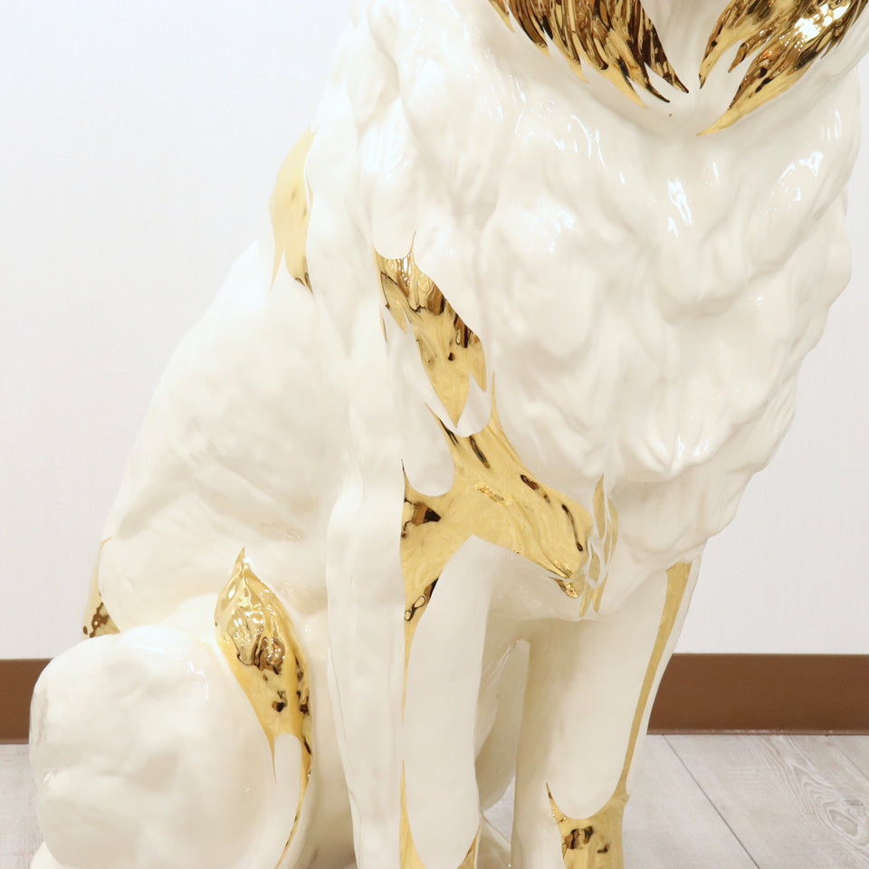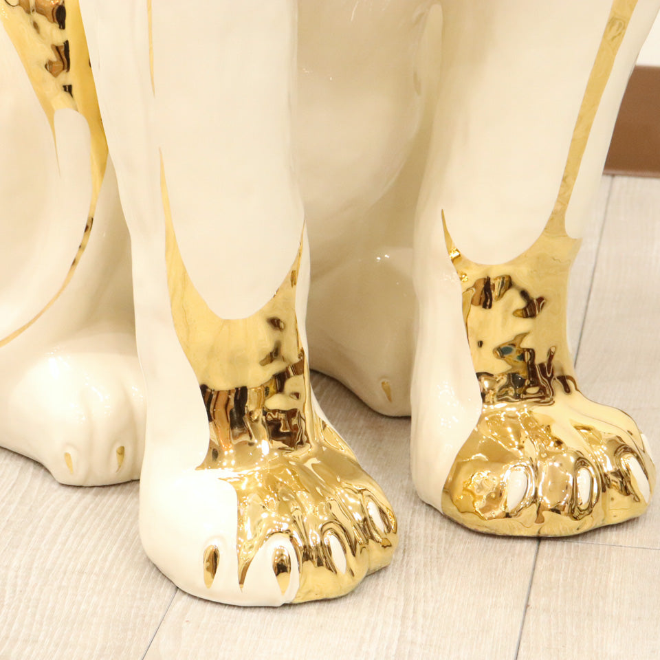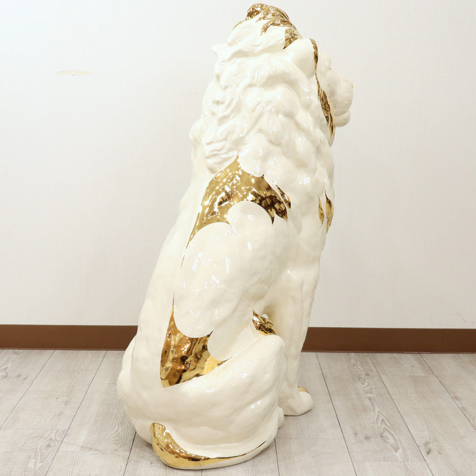 イタリア ライオン AHURA 陶器 置物 オブジェ アイボリーゴールド