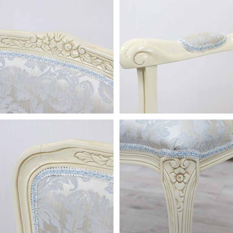 フレームと脚部はアンティークホワイト塗装仕上げ。使いこむ程に味わいが出て長年に渡ってお楽しみいただけます。