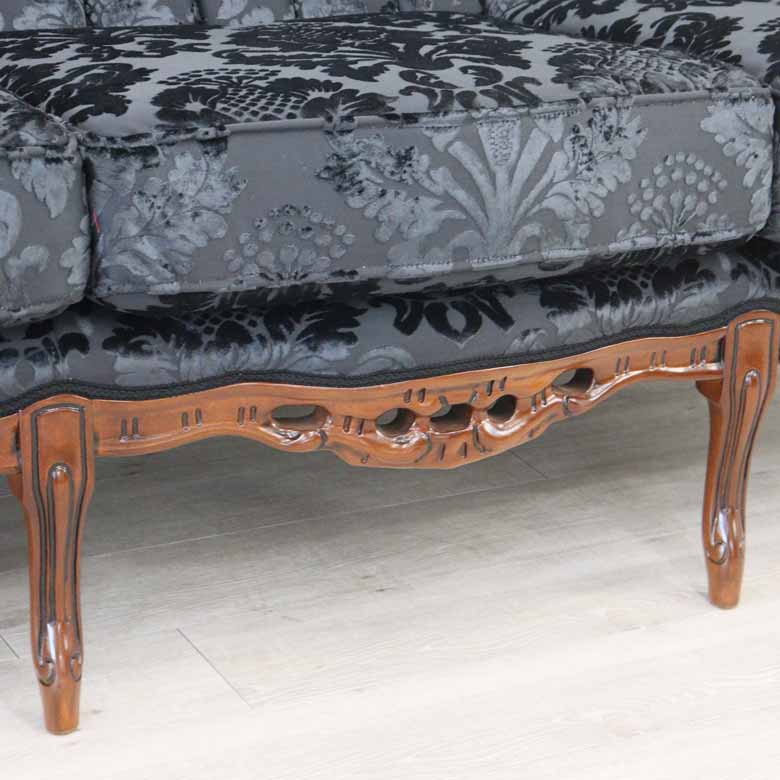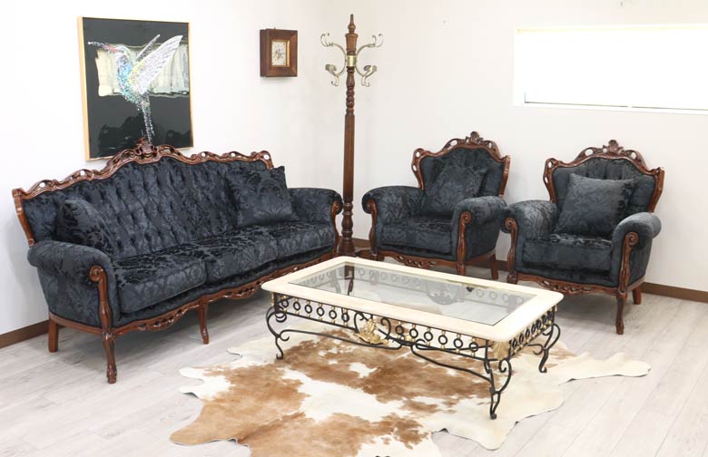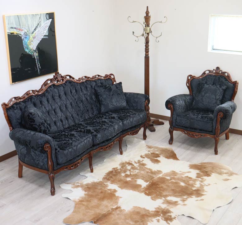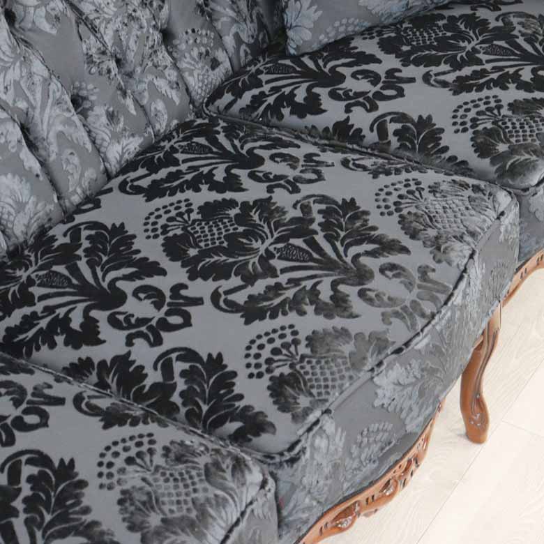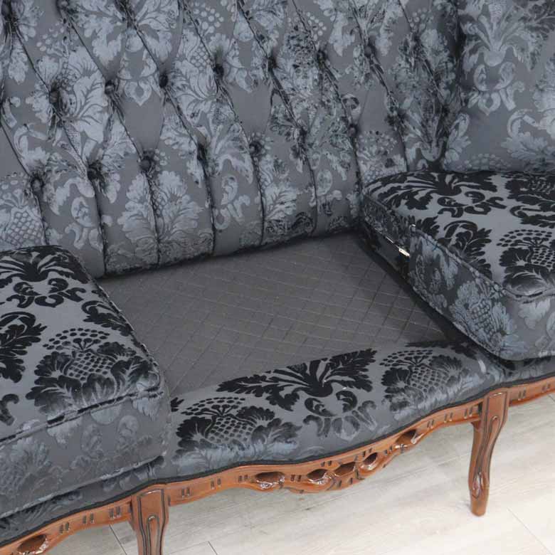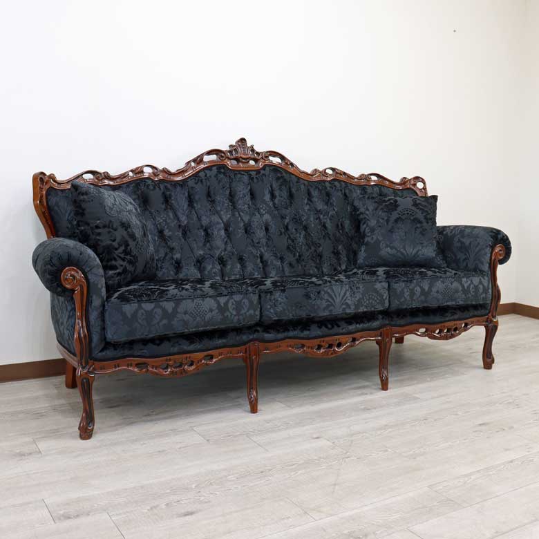 イタリア 3Pソファ ダマスク・ブラック 3人掛け 完成品