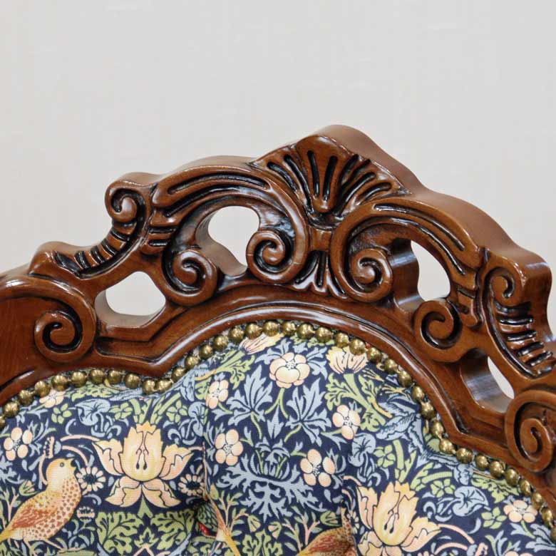 ◆イタリアの現地職人が丹精込めた繊細な彫刻が、フレーム部分や脚部全体に施されています。