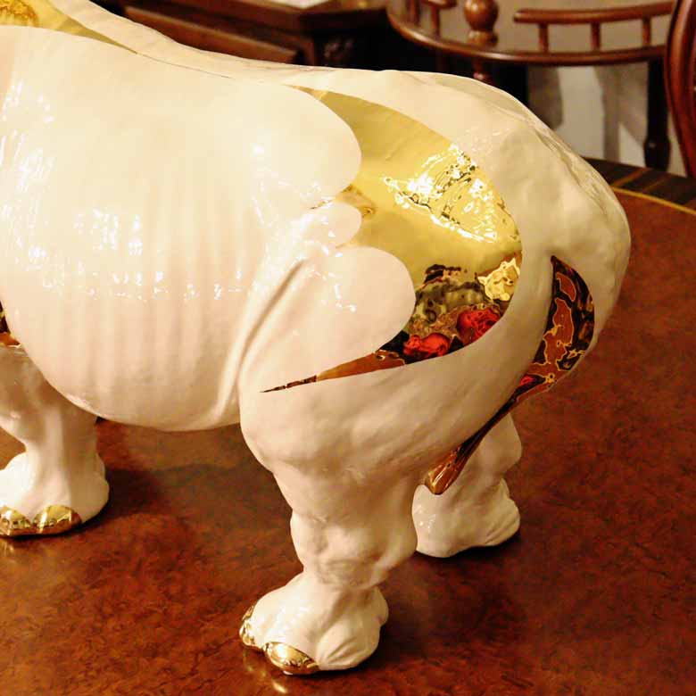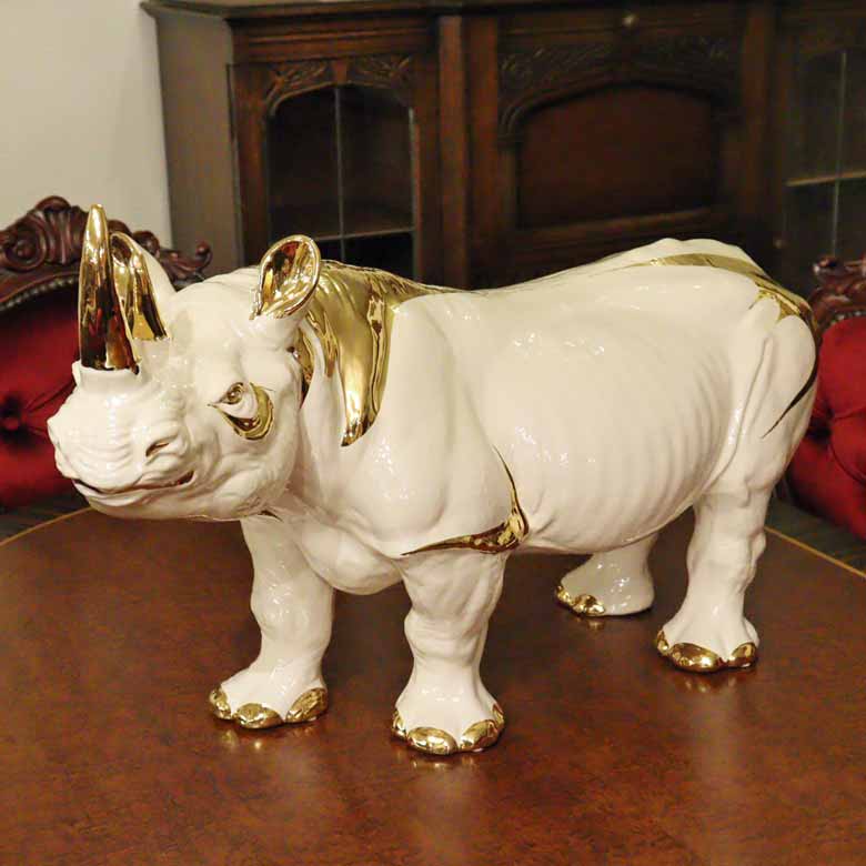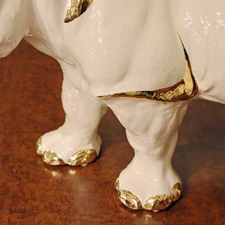 イタリア サイ AHURA 陶器 置物 オブジェ 風水 縁起物 リノ ライナセロス アイボリーゴールド