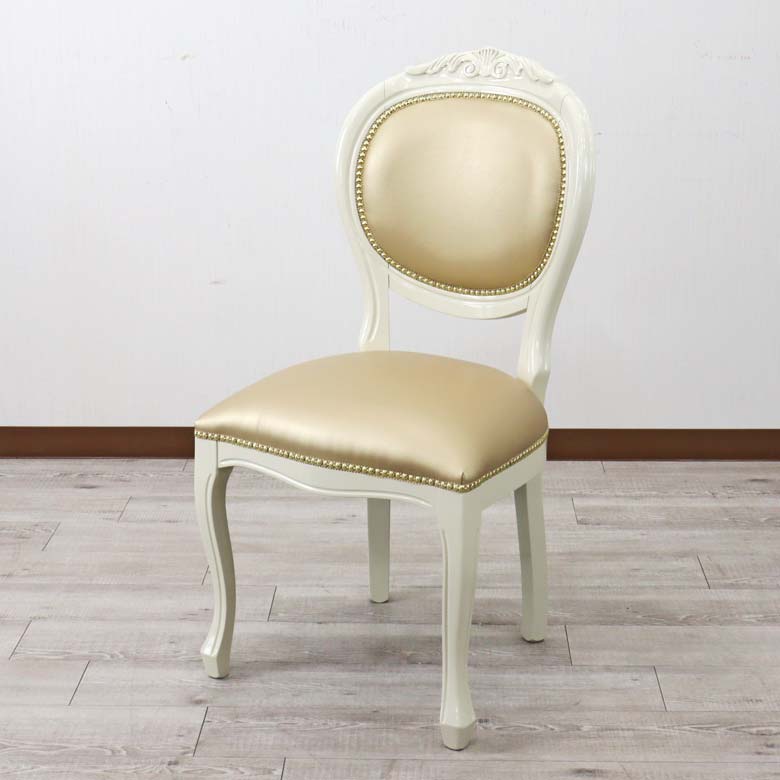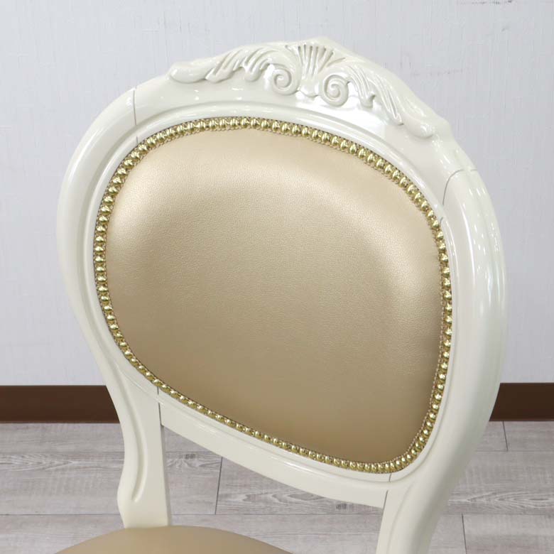 イタリア ダイニングチェア 猫脚 ゴールド パールホワイト 合皮