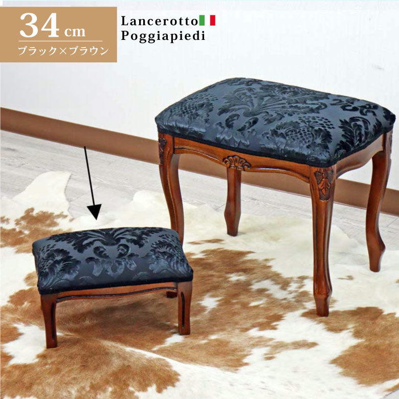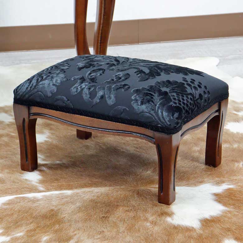 イタリア フットスツール ダマスク ブラック 補助椅子 玄関用 完成品