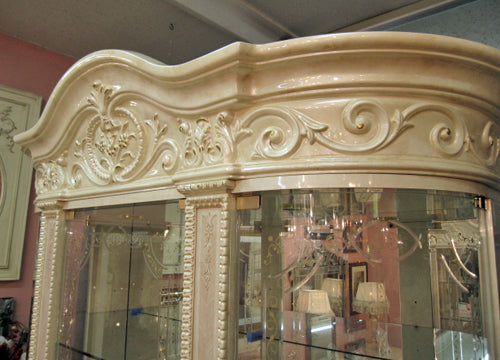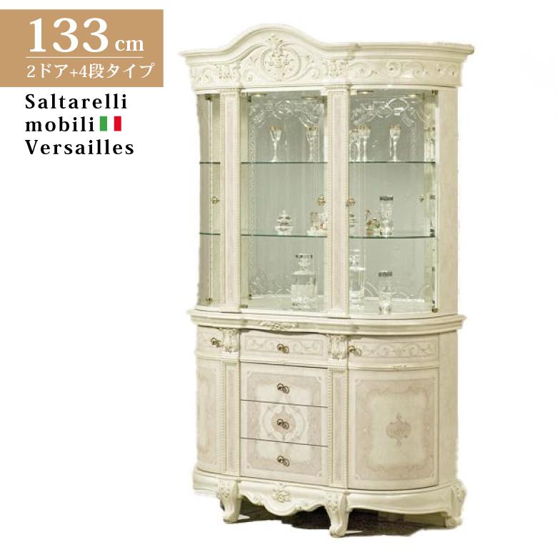 王冠のような天飾りと猫脚、ゴールドの装飾金具と アラベスク紋様のガラス扉、宮廷風のテイストがより ラグジュアリーな風格のヴェルサイユシリーズ。