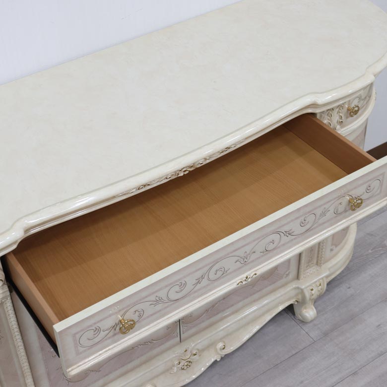 クラシックでプリンセスな生活に憧れる方におすすめの白家具シリーズで、 サルタレッリモビリ社に今までにはなかったネコ脚デザインや、 ハート・ワイルドローズをモチーフにする事で、 格式的なクラシック家具をやわらかで優しいプリンセス家具に仕上げています。