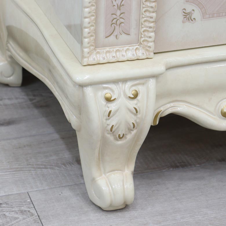 クラシックでプリンセスな生活に憧れる方におすすめの白家具シリーズで、 サルタレッリモビリ社に今までにはなかったネコ脚デザインや、 ハート・ワイルドローズをモチーフにする事で、 格式的なクラシック家具をやわらかで優しいプリンセス家具に仕上げています。