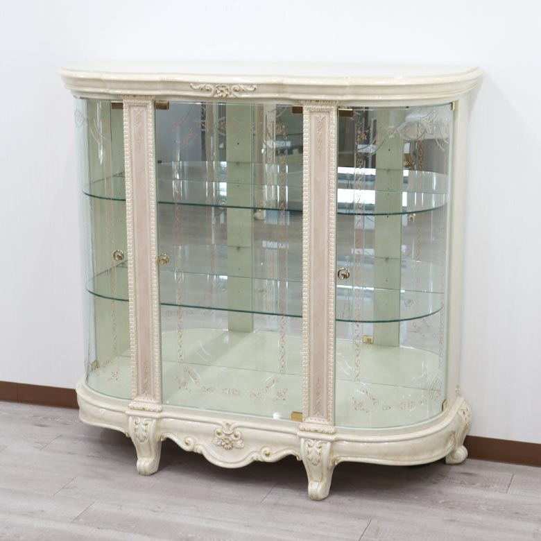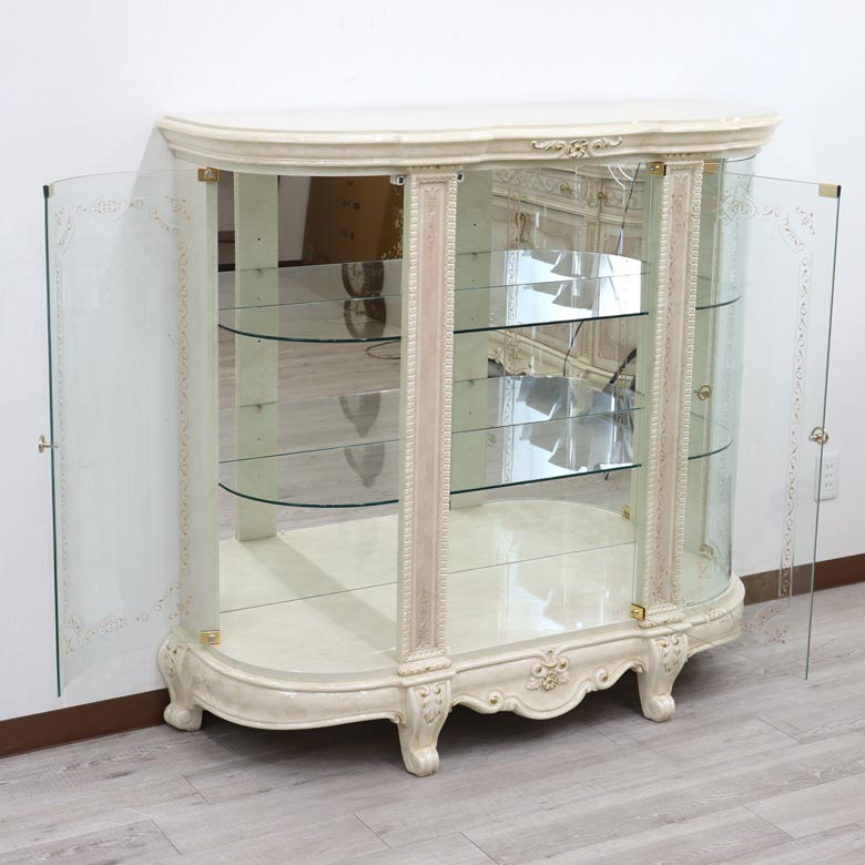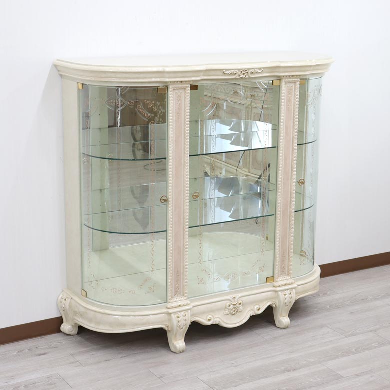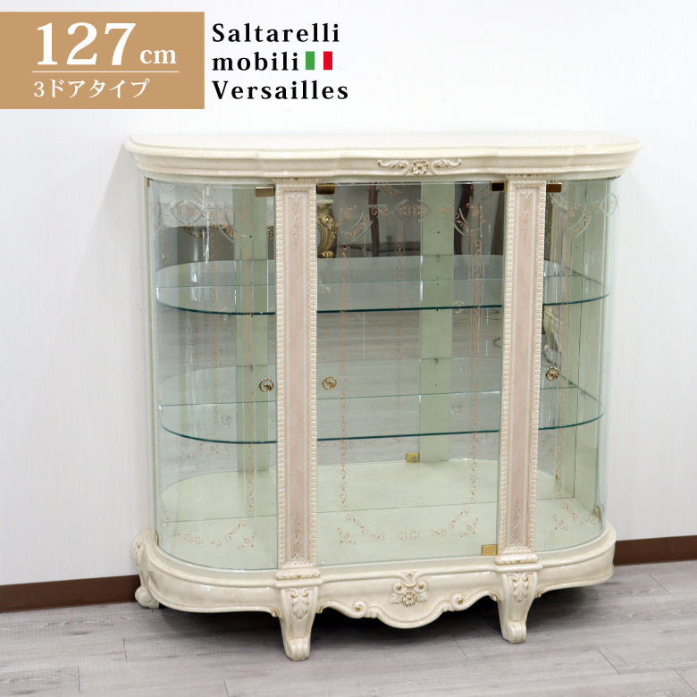 サルタレッリ ヴェルサイユ 3ドア ローキュリオケース アイボリー ガラスキャビネット