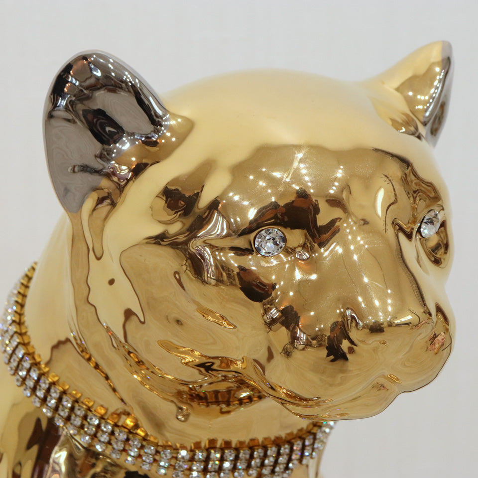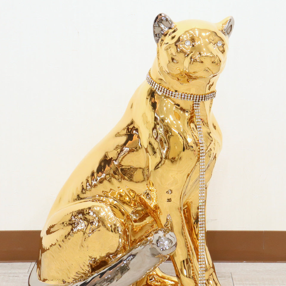 イタリア レオパード AHURA 陶器 置物 オブジェ 風水 縁起物 パンサー ゴールド