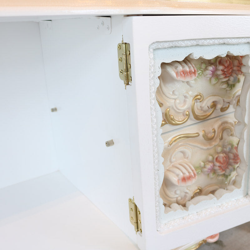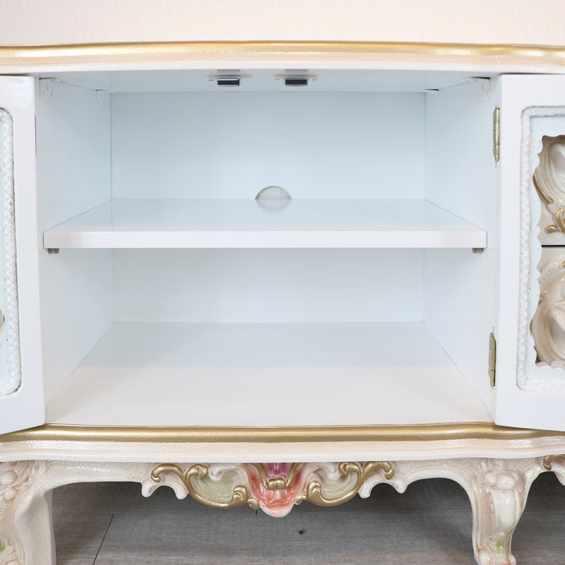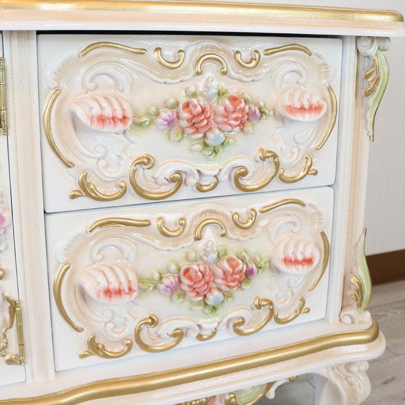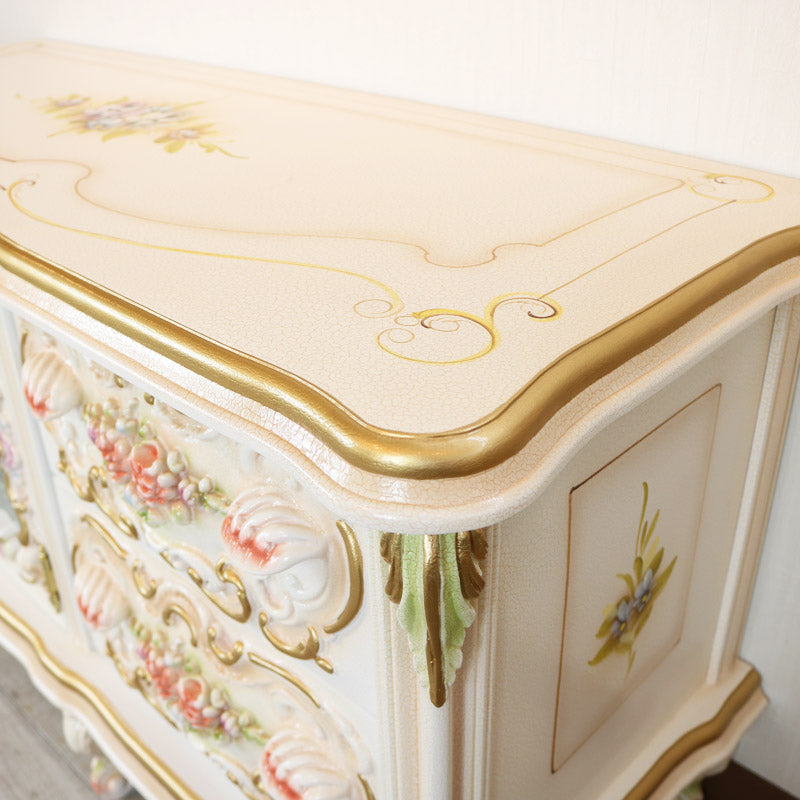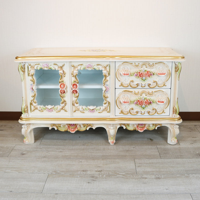 ロココ テレビボード 105cm ローキャビネット クラック仕上げ 白家具
