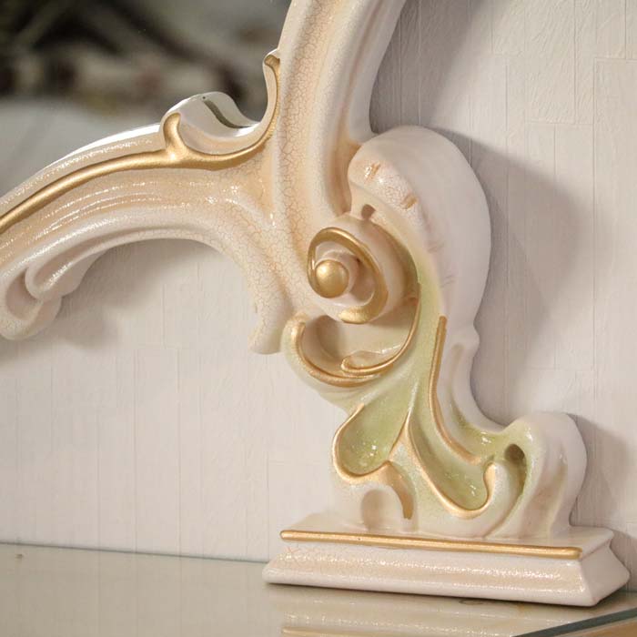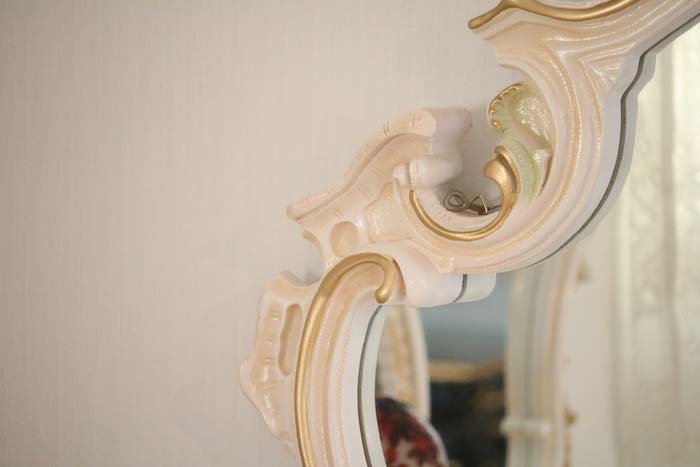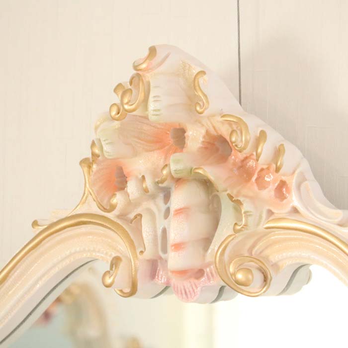 ロココ ワイドミラー 鏡 壁掛け クラック仕上げ 白家具