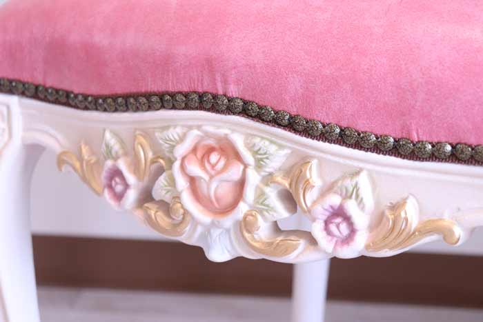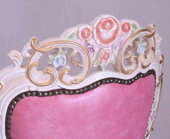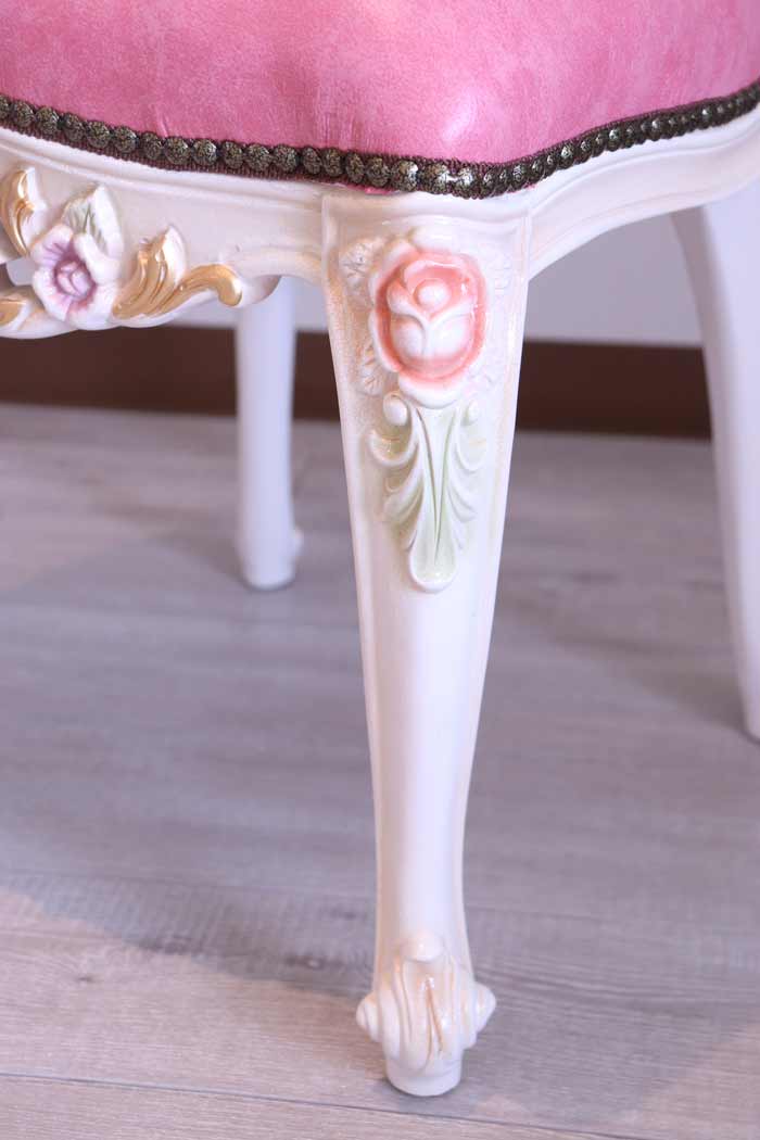 ロココ ダイニングチェア 本皮 ピンク チェア クラック仕上げ 白家具