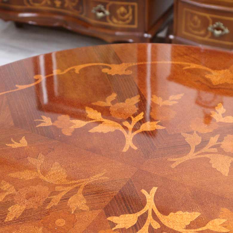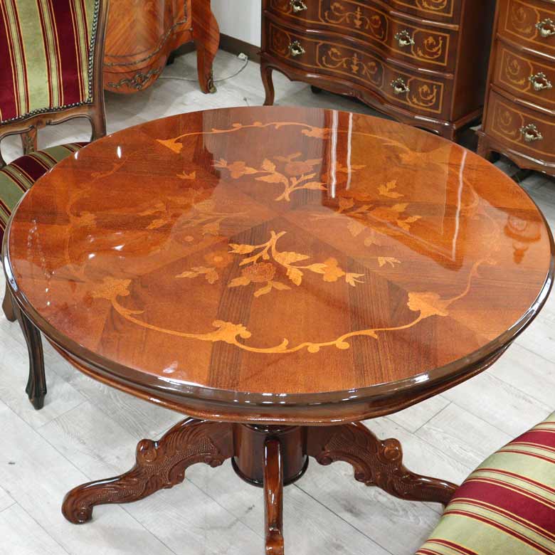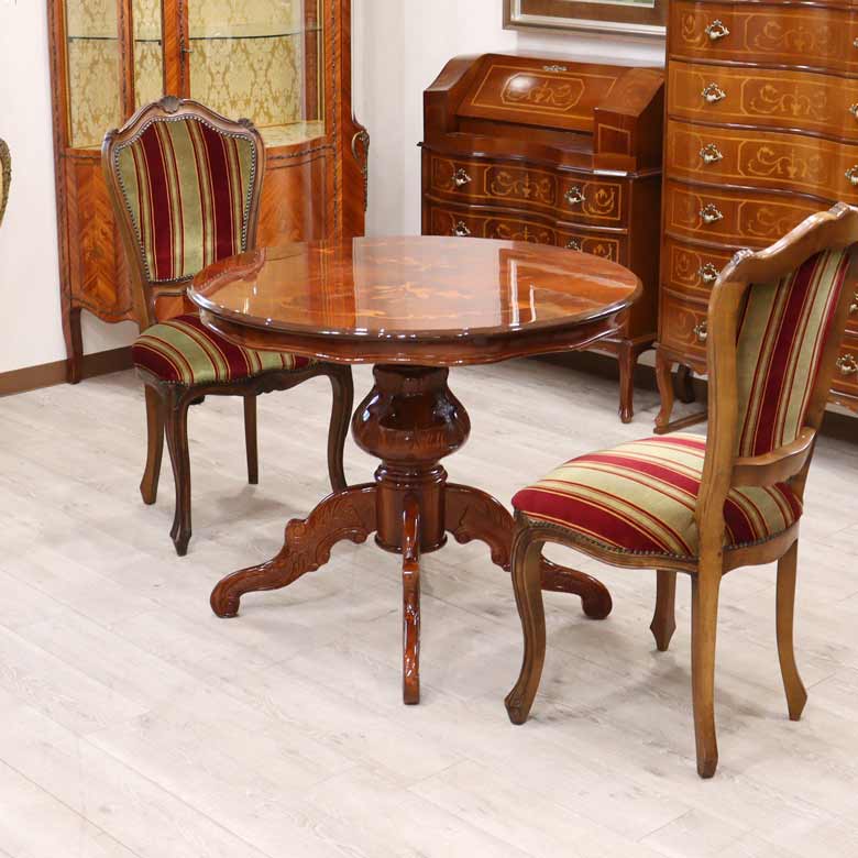 ◆イタリア伝統の象嵌細工を施したクラシックダイニングテーブルです。