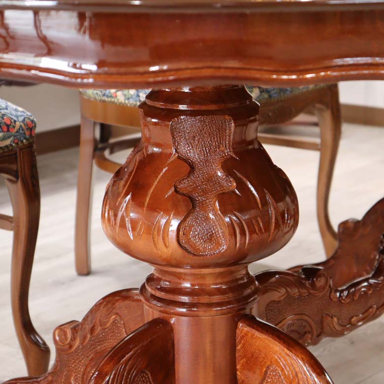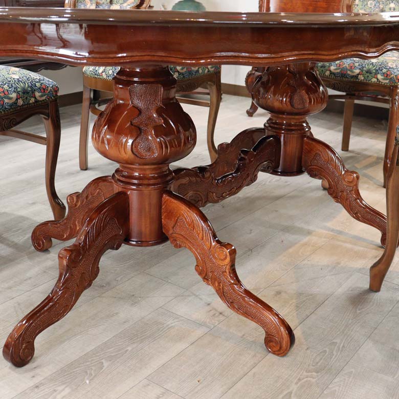 エレガントな細部の彫刻など手の込んだ重厚感のあるヨーロピアンデザインです。脚部は4本脚の頑丈な作りとなっております。