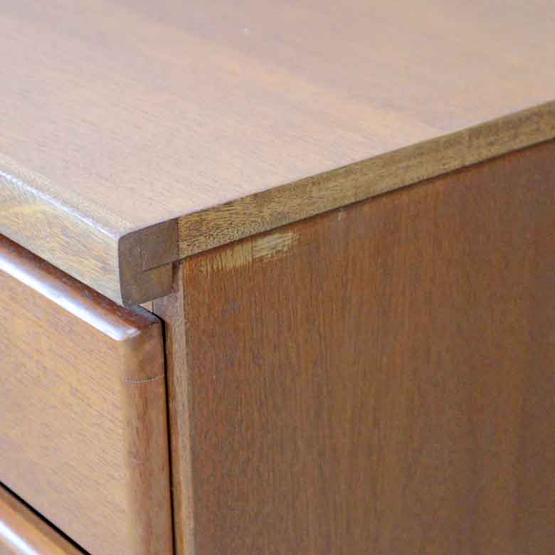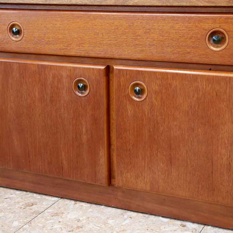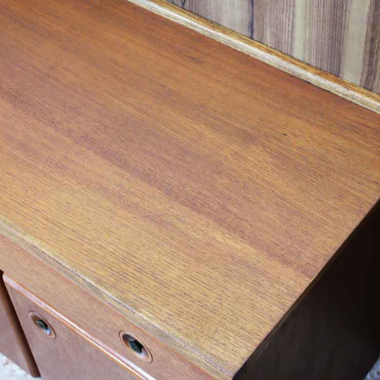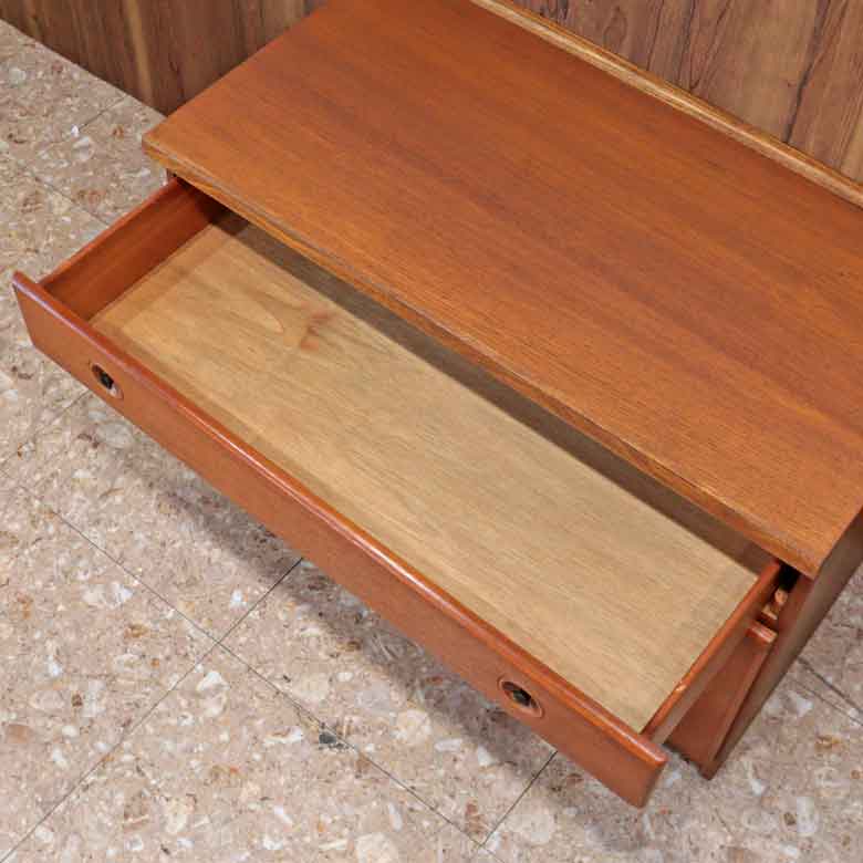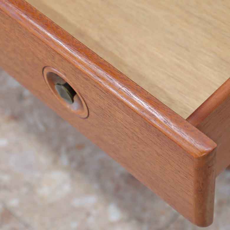 美しい木目と温かみのある色合いが特徴のチーク材が使用されています。ミッドセンチュリー期にイギリスや北欧で大変人気を博した素材です。