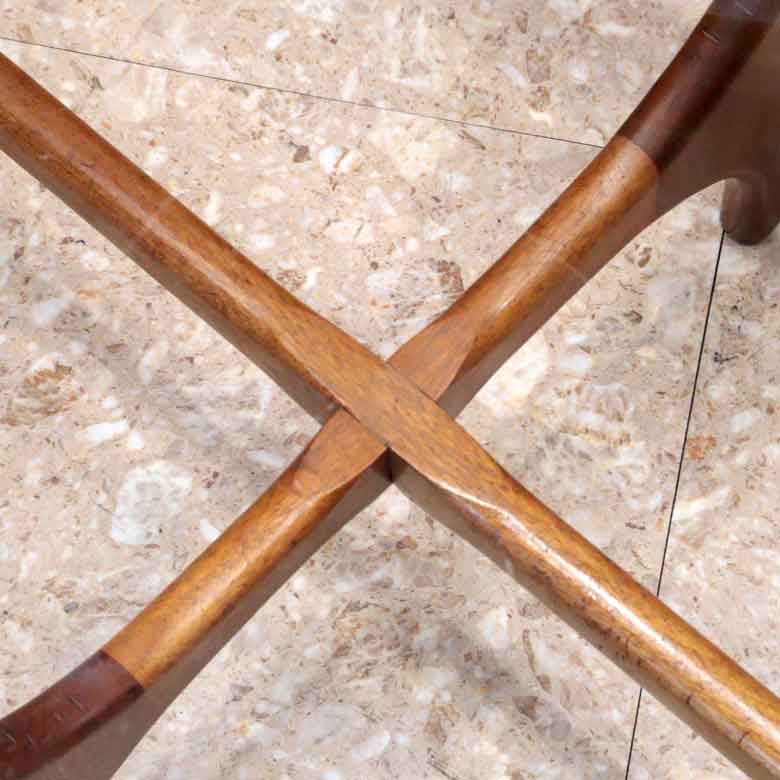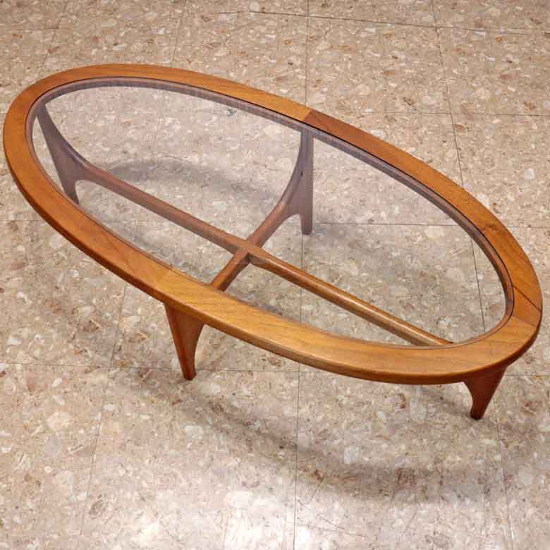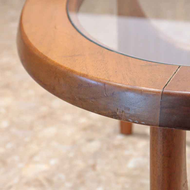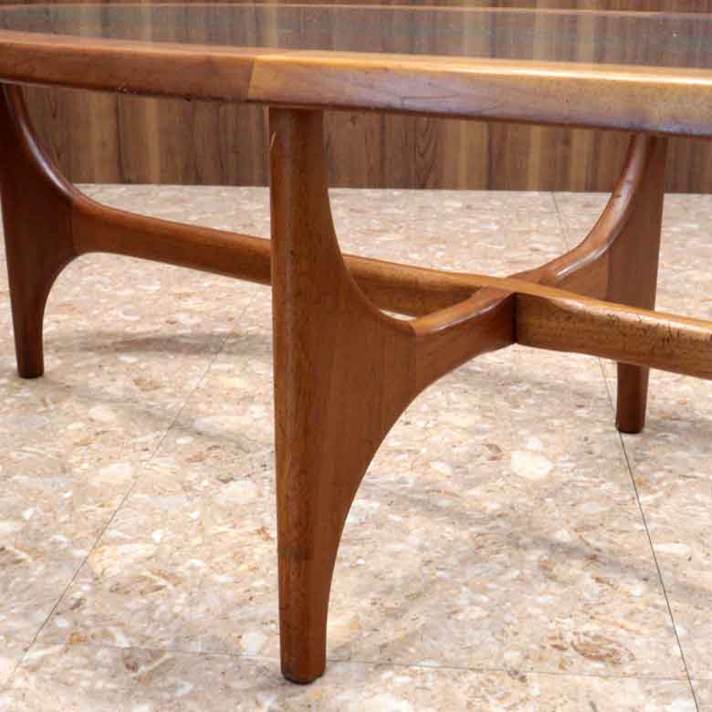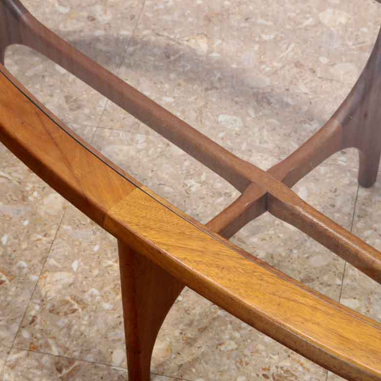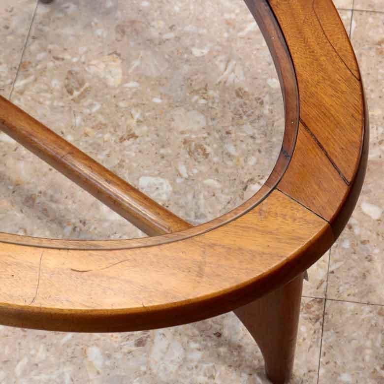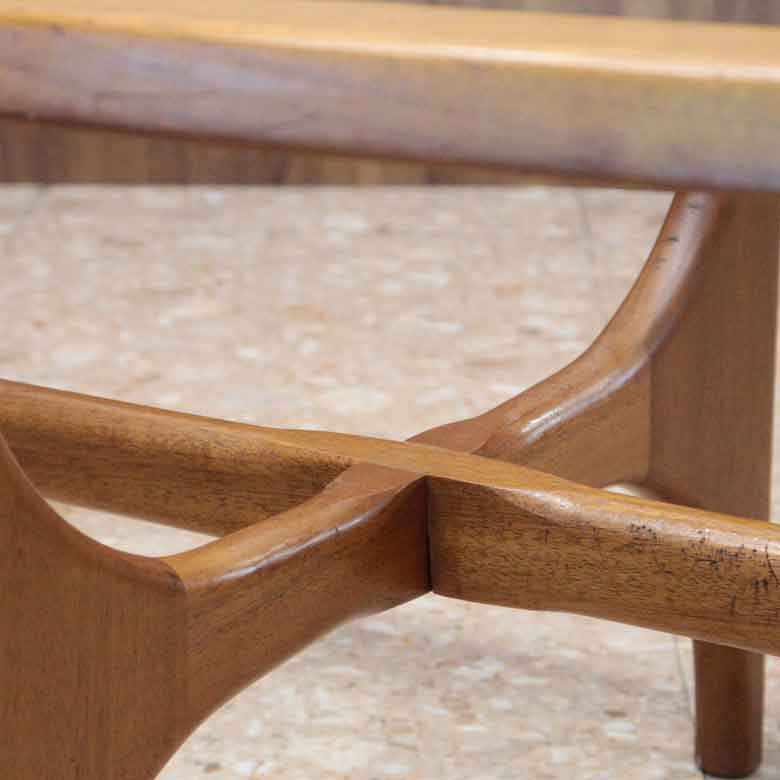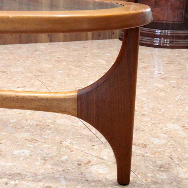美しいデザインのチークフレーム+ガラストップのセンターテーブル
