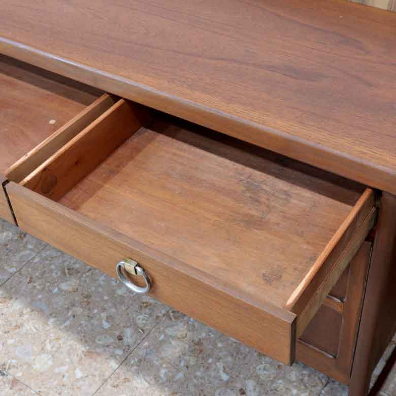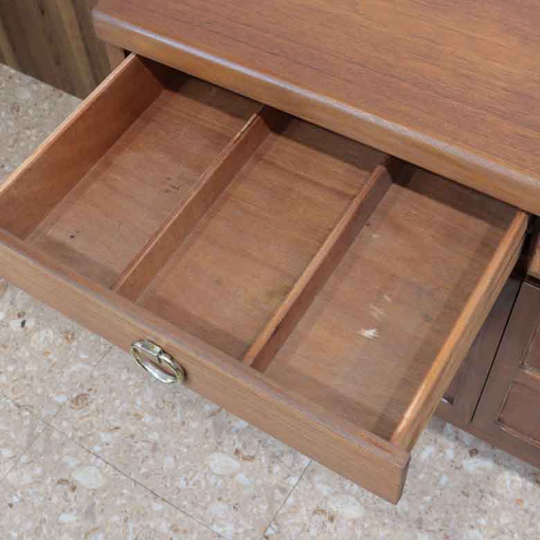 上部には3つの引き出し、下部には3つの戸棚。細部まで計算された収納構成で、実用性と美しさを両立しています。