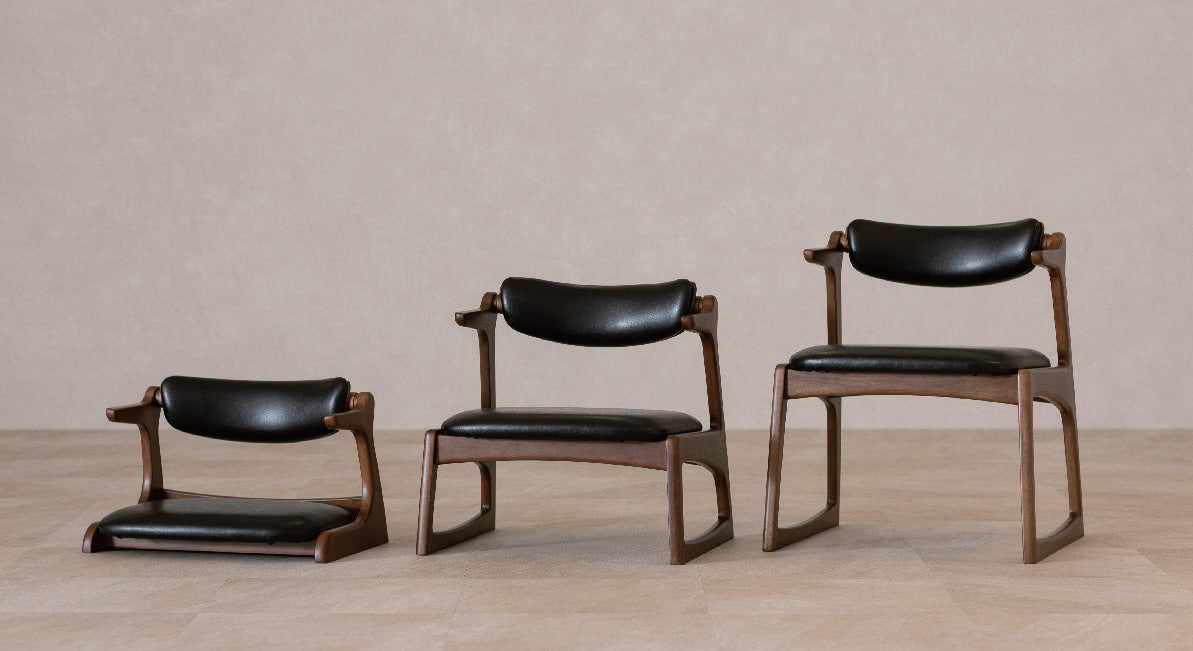 立ち座りを補助する肘掛けや、畳の上でも安定してご使用いただける脚形状は、心からリラックスさせてくれるデザインです。