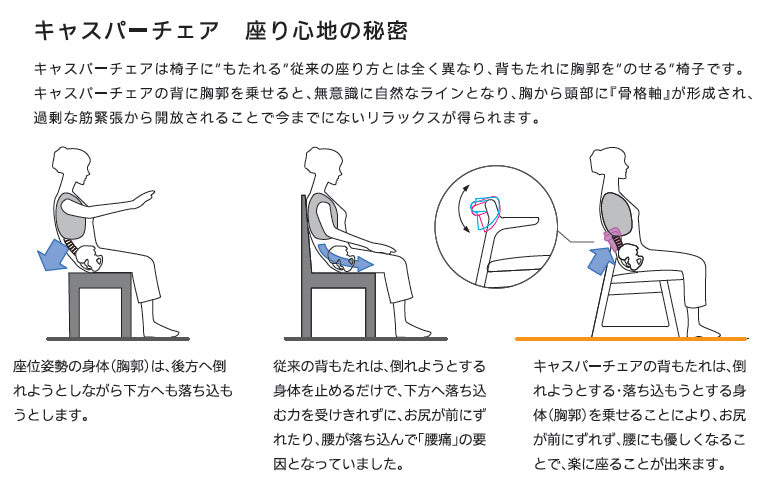 ◆座面に触れている部分の体圧を分散することで、長時間座っても疲れにくい椅子に仕上がりました。