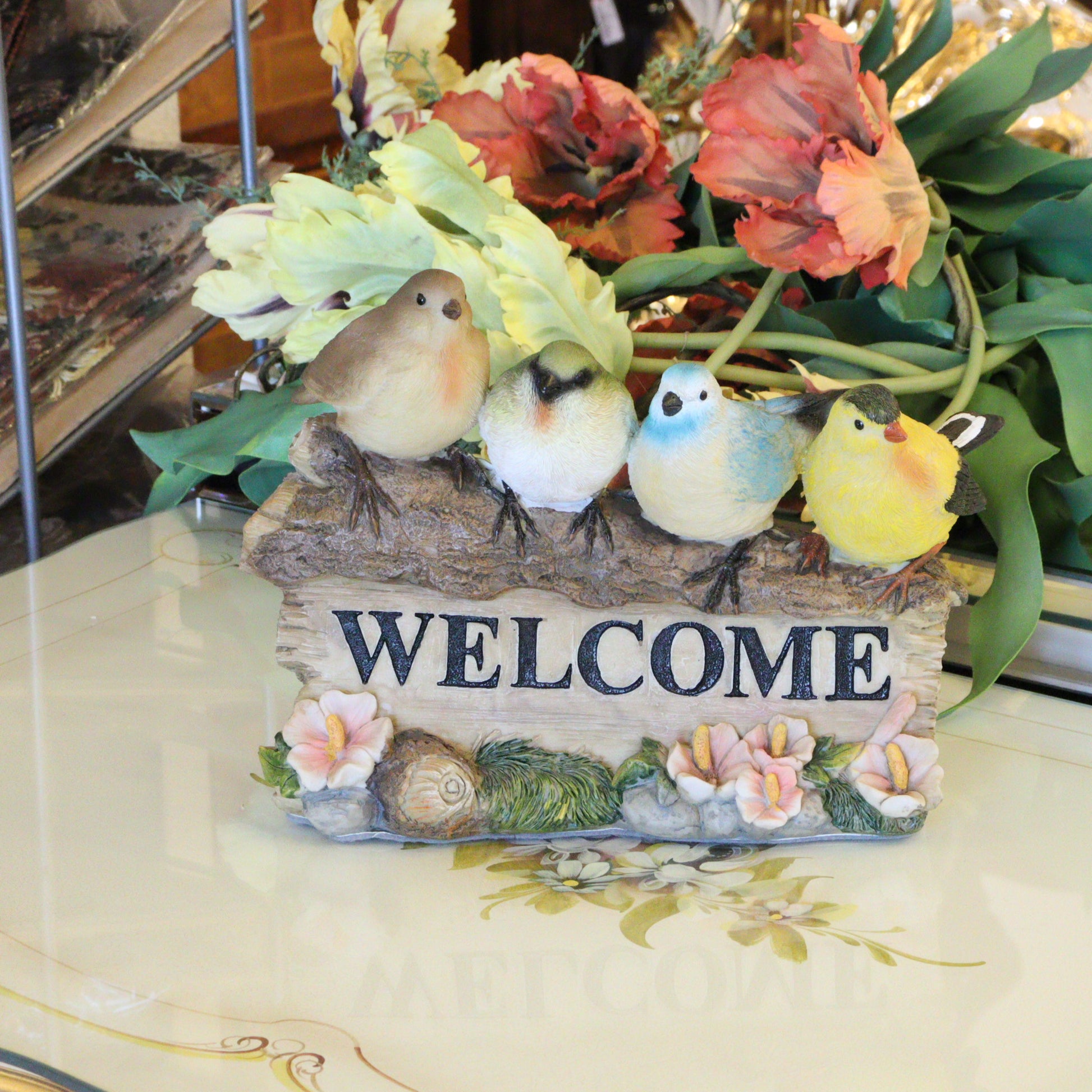 ガーデンオブジェ 小鳥の集まり WELCOME オーナメント 置物