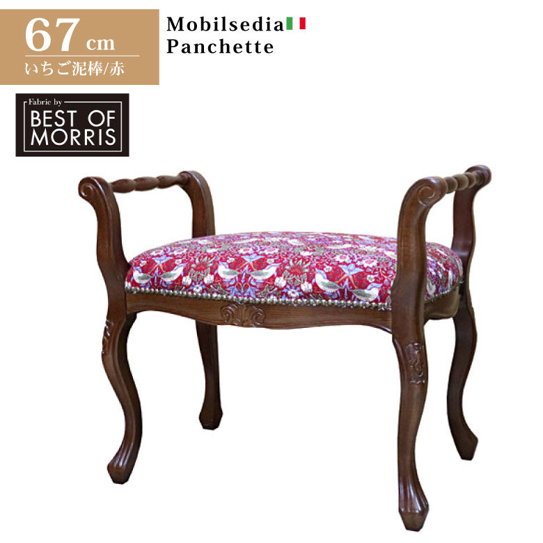 肘付きスツール いちご泥棒 レッド 木製 ベンチ 猫脚 イタリア 完成品 ブラウン いちご泥棒 ベスト・オブ・モリス