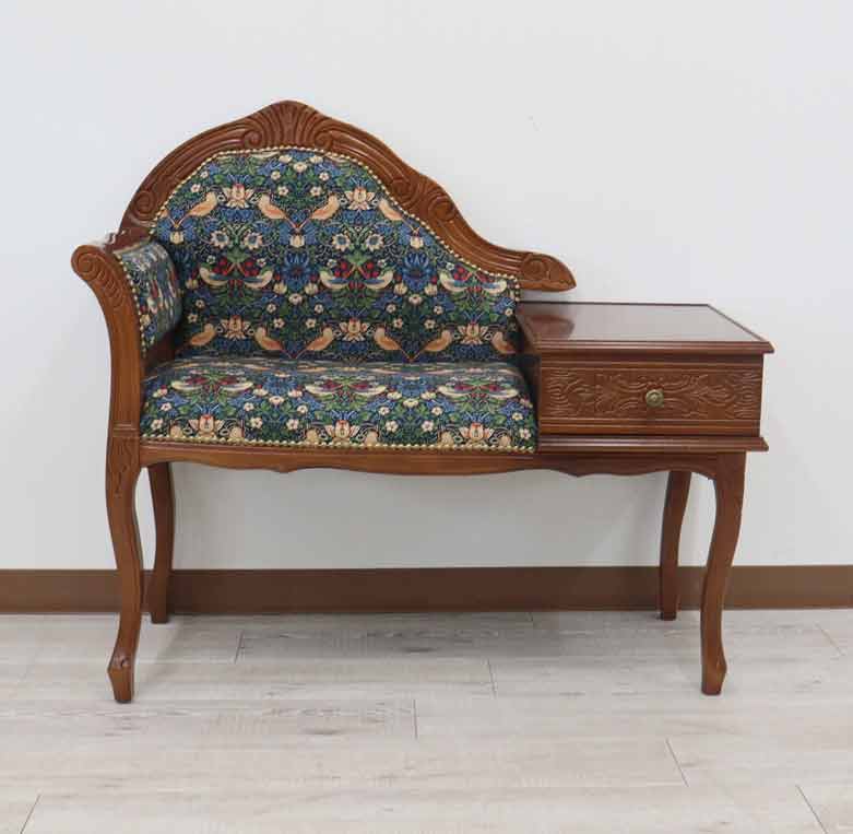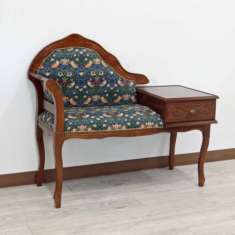 テレフォンベンチ いちご泥棒 ブルー 木製 ベンチ 猫脚 イタリア いちご泥棒 ベスト・オブ・モリス 日本