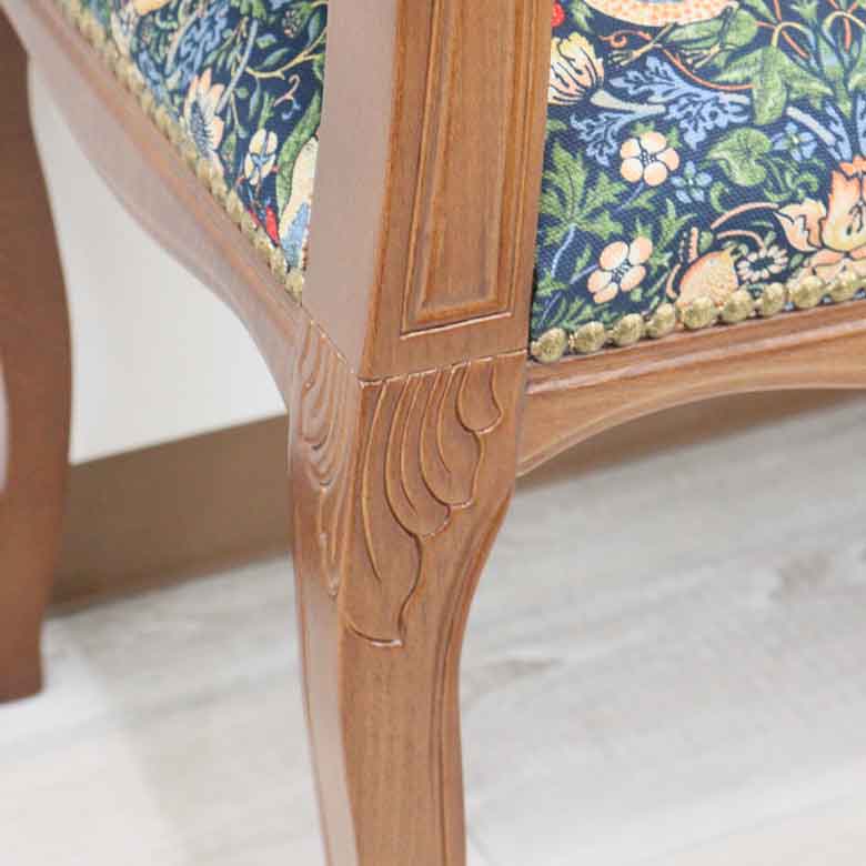 エレガントな猫脚、フレームに施された彫刻が美しいヨーロピアンデザインの家具となります。