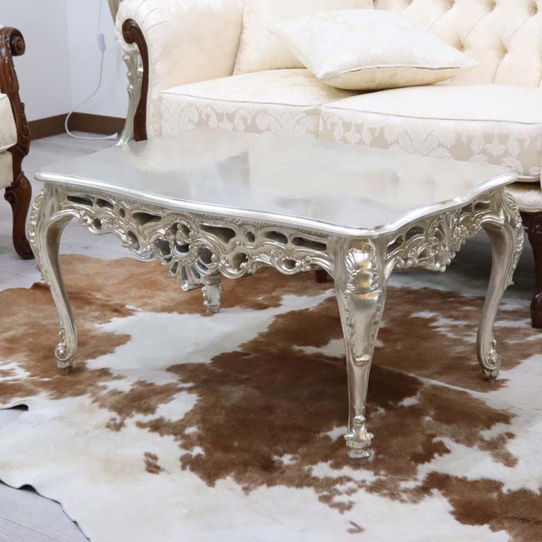 リビングテーブル シルバー 84cm ローテーブル 猫脚 イタリア DIBIASE TB-S-SV