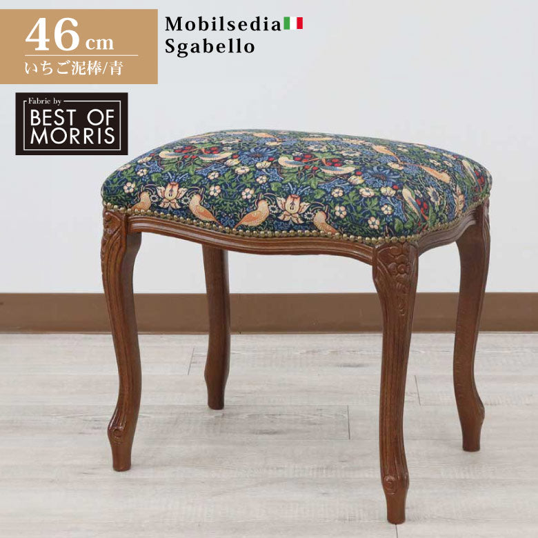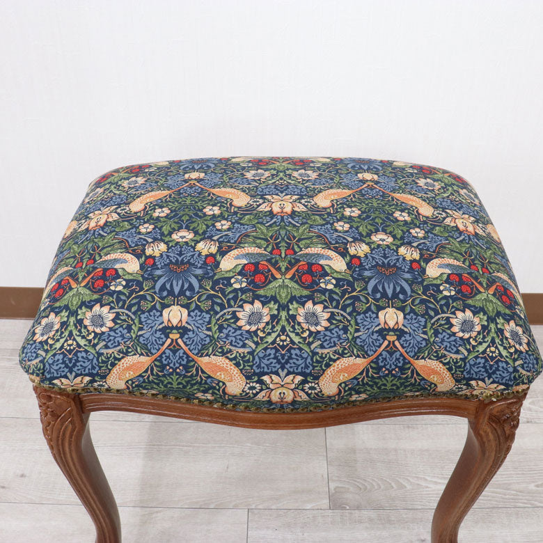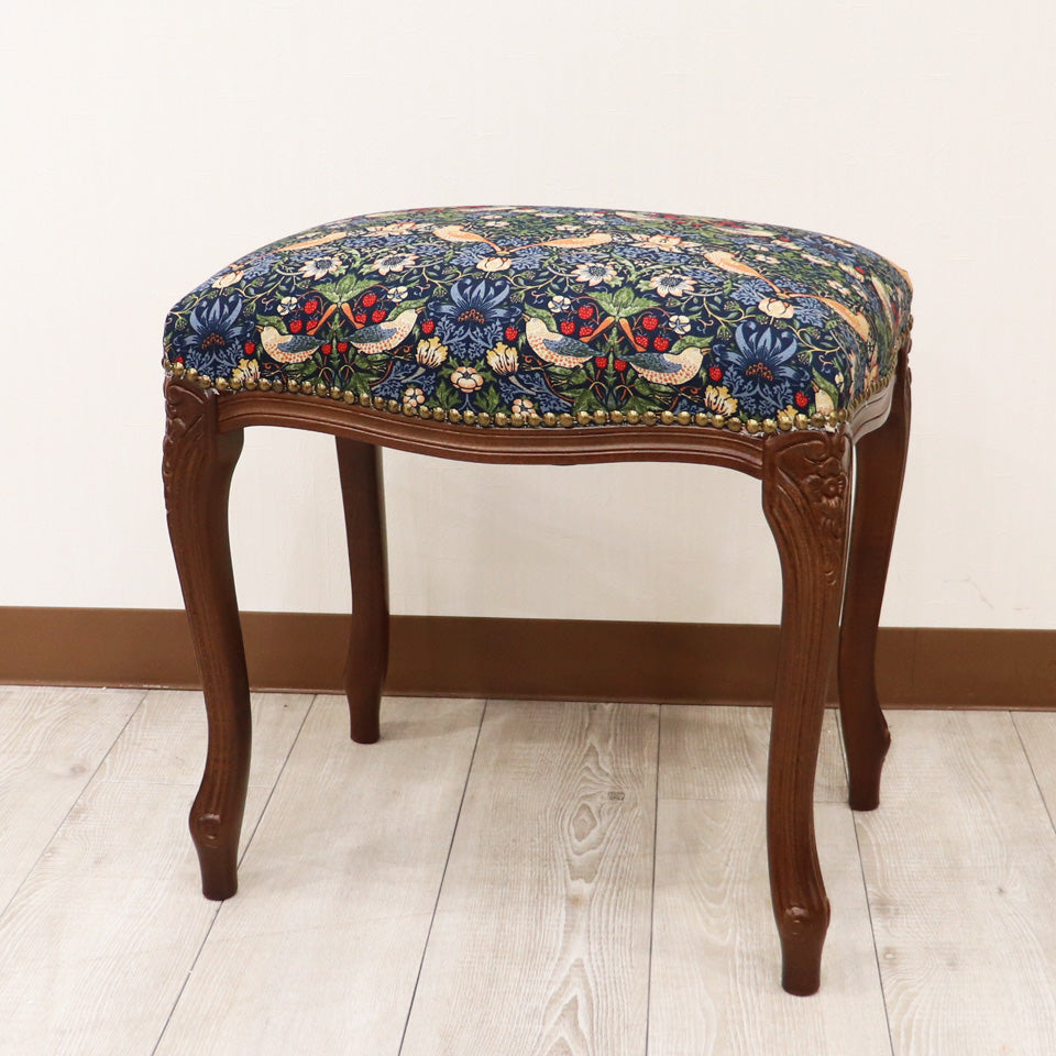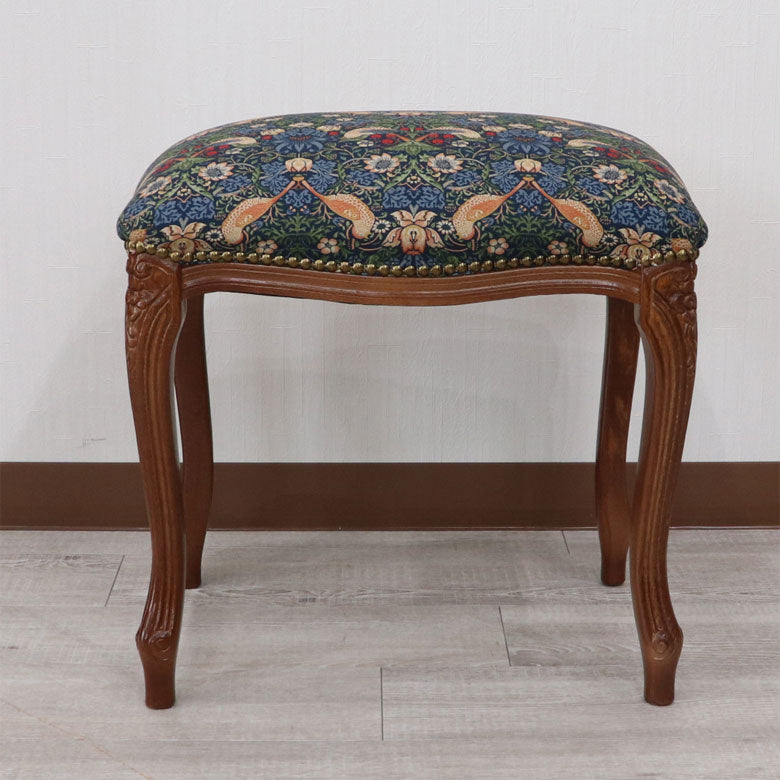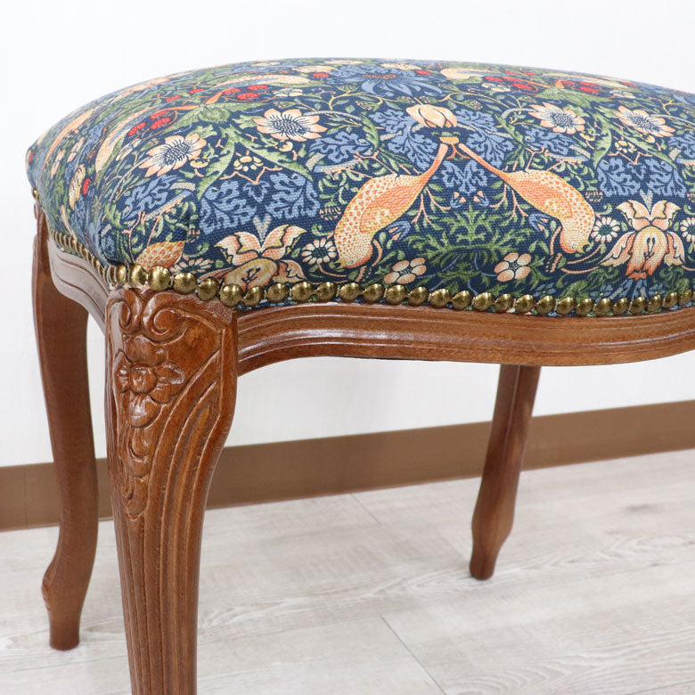 スツール いちご泥棒 ブルー 木製 猫脚 イタリア 玄関 オットマン 補助椅子 玄関用 完成品 ブラウン ベストオブモリス