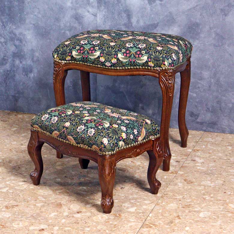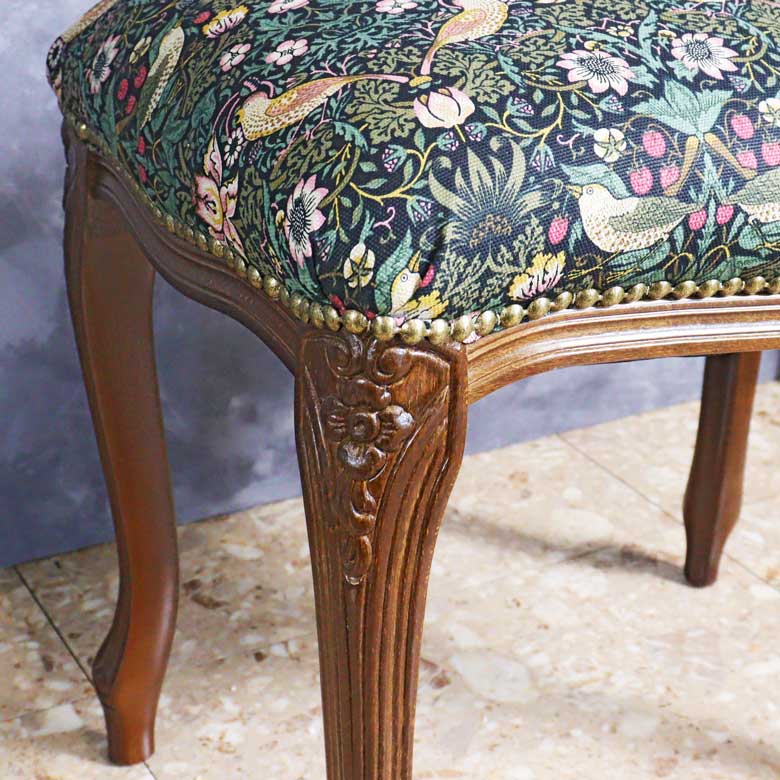 スツール いちご泥棒 グリーン 木製 猫脚 イタリア 玄関 オットマン 補助椅子 玄関用 完成品 ブラウン ベストオブモリス