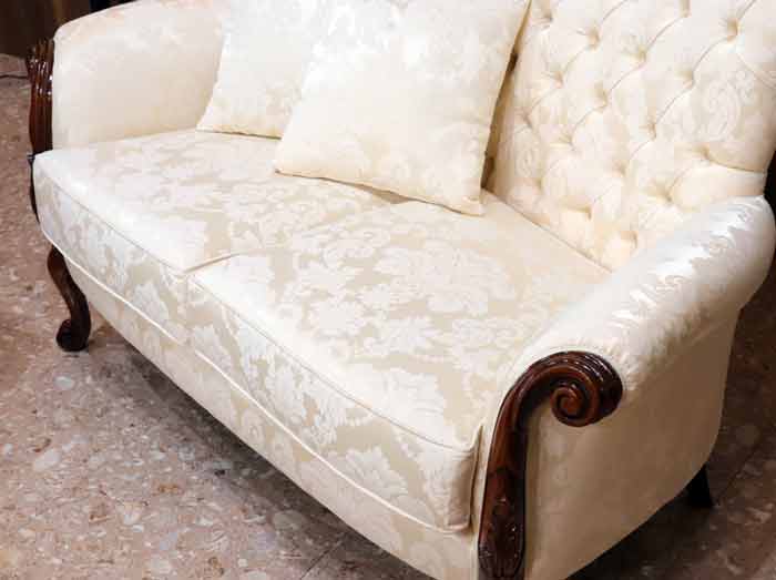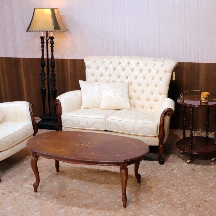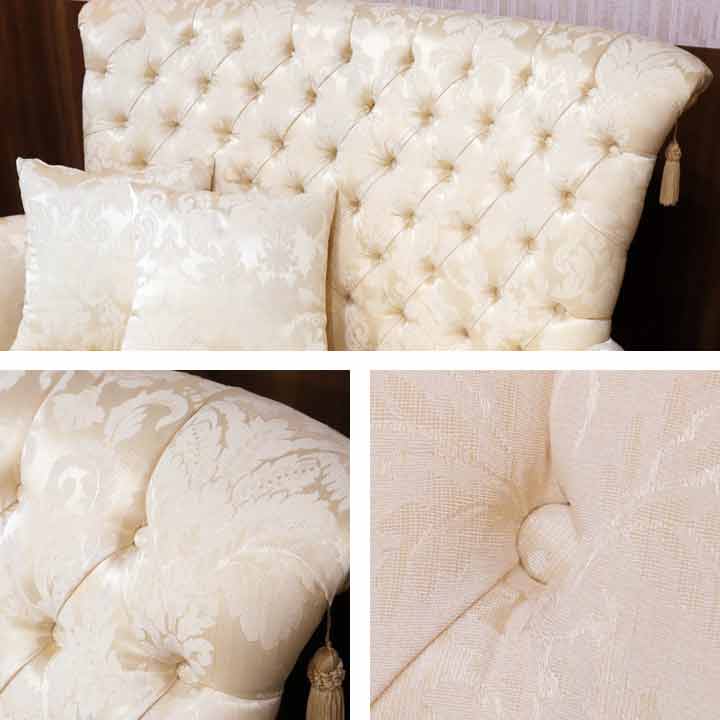 ◆イタリアの現地職人が丹精込めた繊細な彫刻が、フレーム部分や脚部全体に施されています。