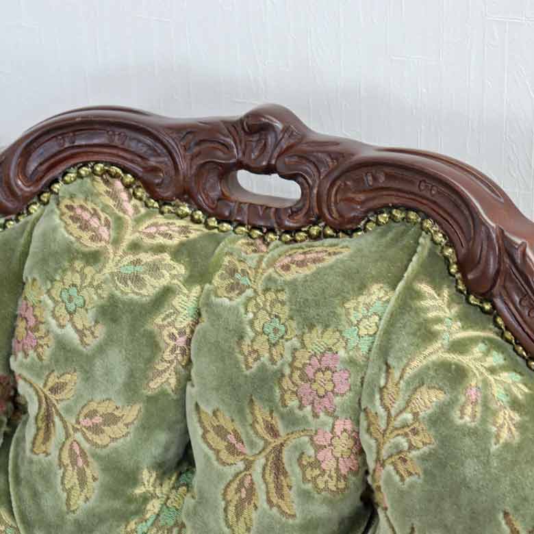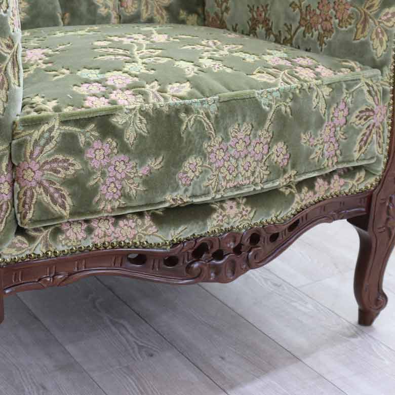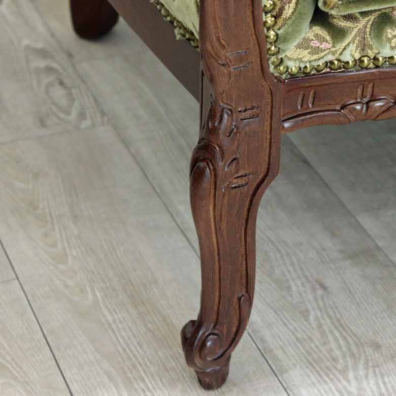 フレームと脚部はアンティーク塗装仕上げ。使いこむ程に味わいが出て長年に渡ってお楽しみいただけます。