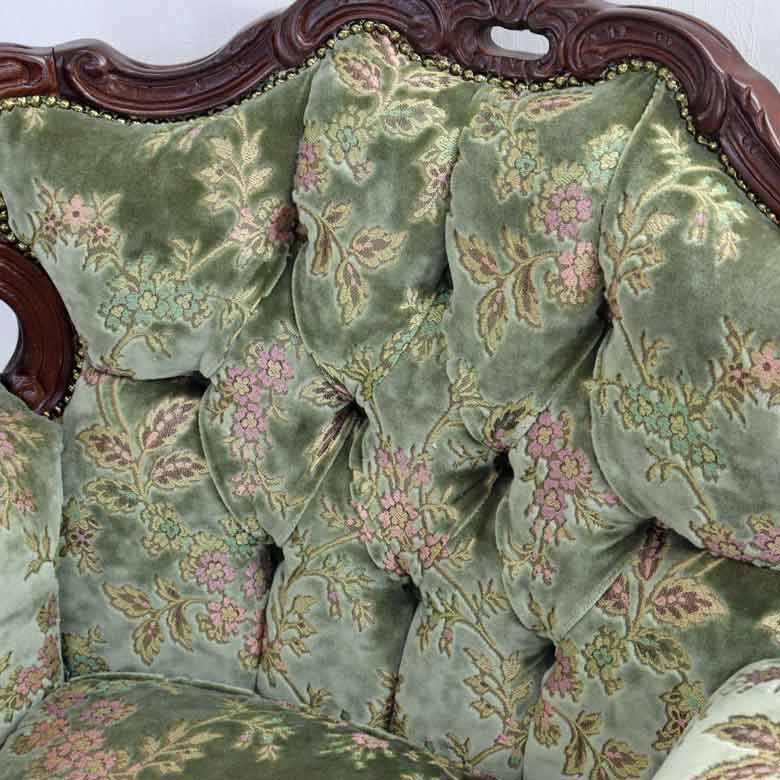◆イタリアの現地職人が丹精込めた繊細な彫刻が、フレーム部分や脚部全体に施されています。