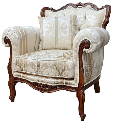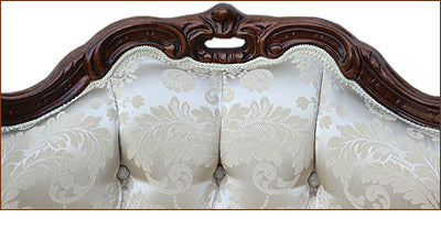 ◆イタリアの現地職人が丹精込めた繊細な彫刻が、フレーム部分や脚部全体に施されています。