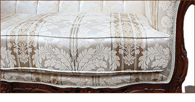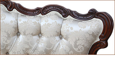 ◆イタリアの現地職人が丹精込めた繊細な彫刻が、フレーム部分や脚部全体に施されています。