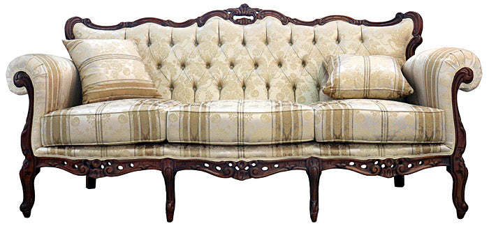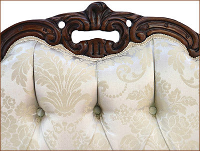 ◆イタリアの現地職人が丹精込めた繊細な彫刻が、フレーム部分や脚部全体に施されています。