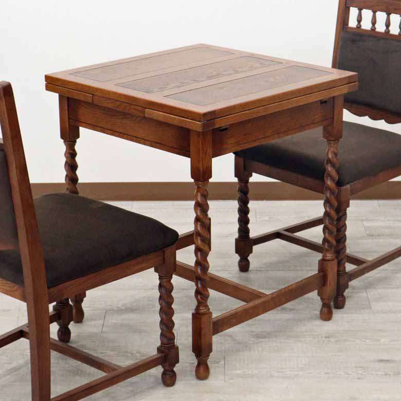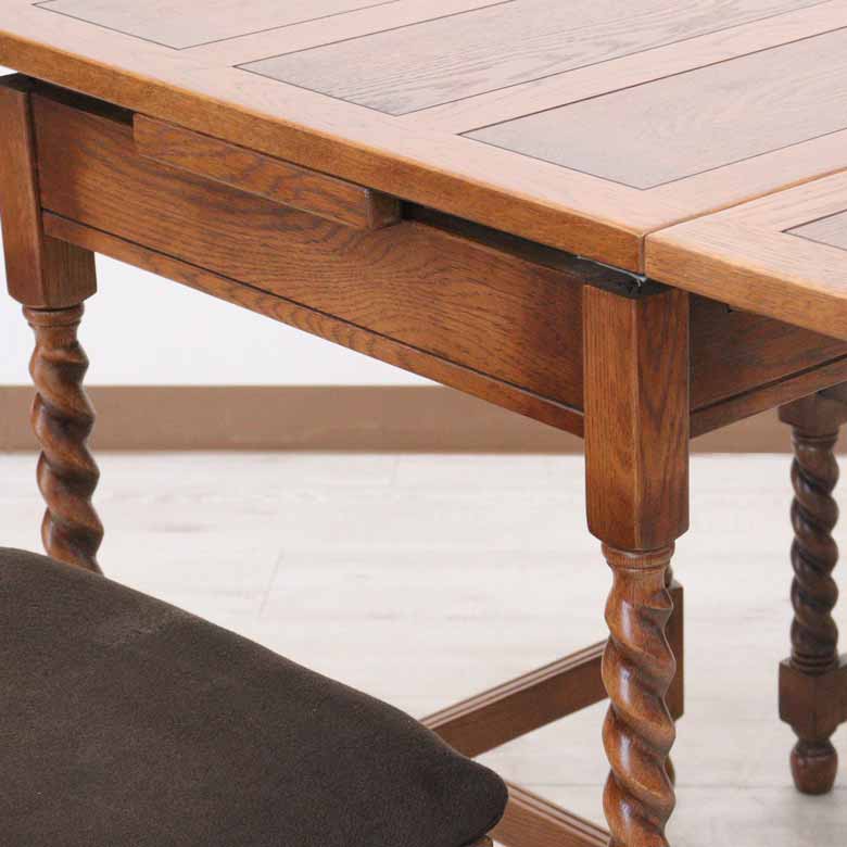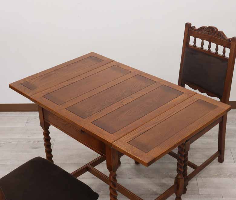 ダイニングテーブル 60-100cm 伸長式 オーク 二人用 木製 茶 レトロ ドローリーフテーブル