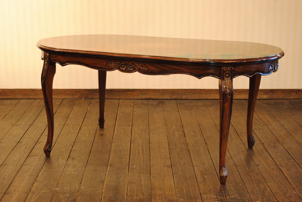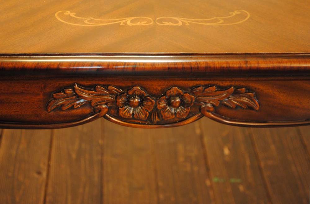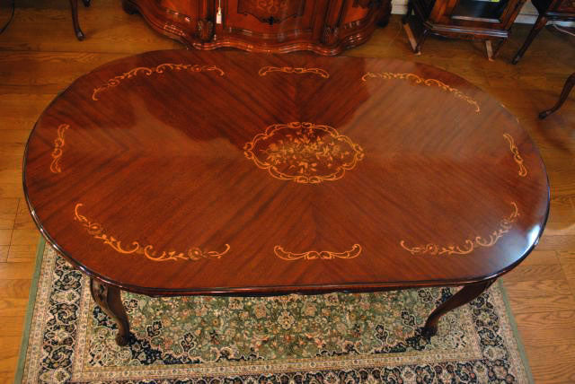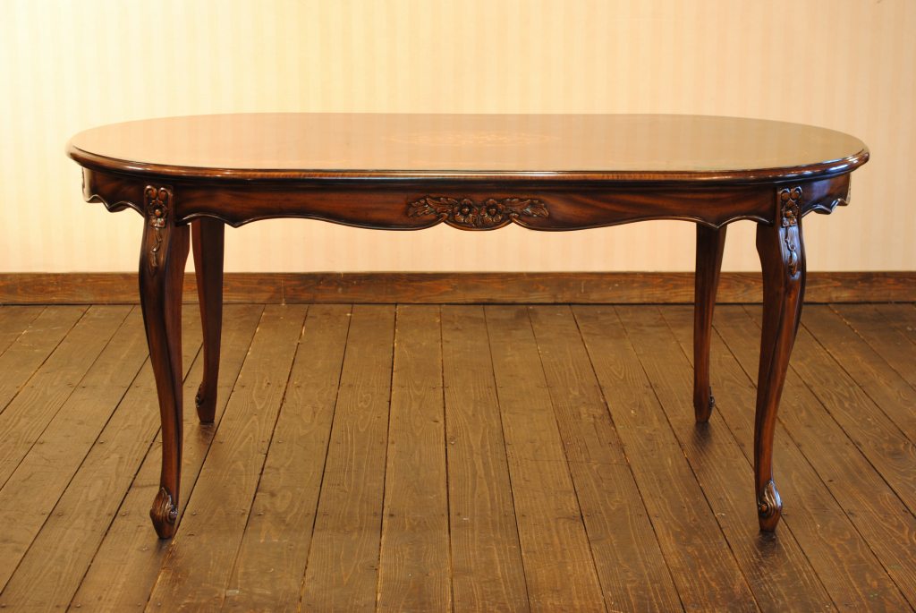 ダイニングテーブル 165cm 楕円形 象嵌 花柄 マホガニー 4人用