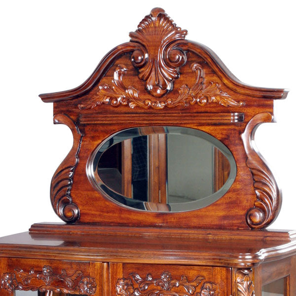高級家具などにつかわれるマホガニーを使用し、深みのある色合いと細部に施された彫刻(カービング)が優雅な雰囲気を演出します。